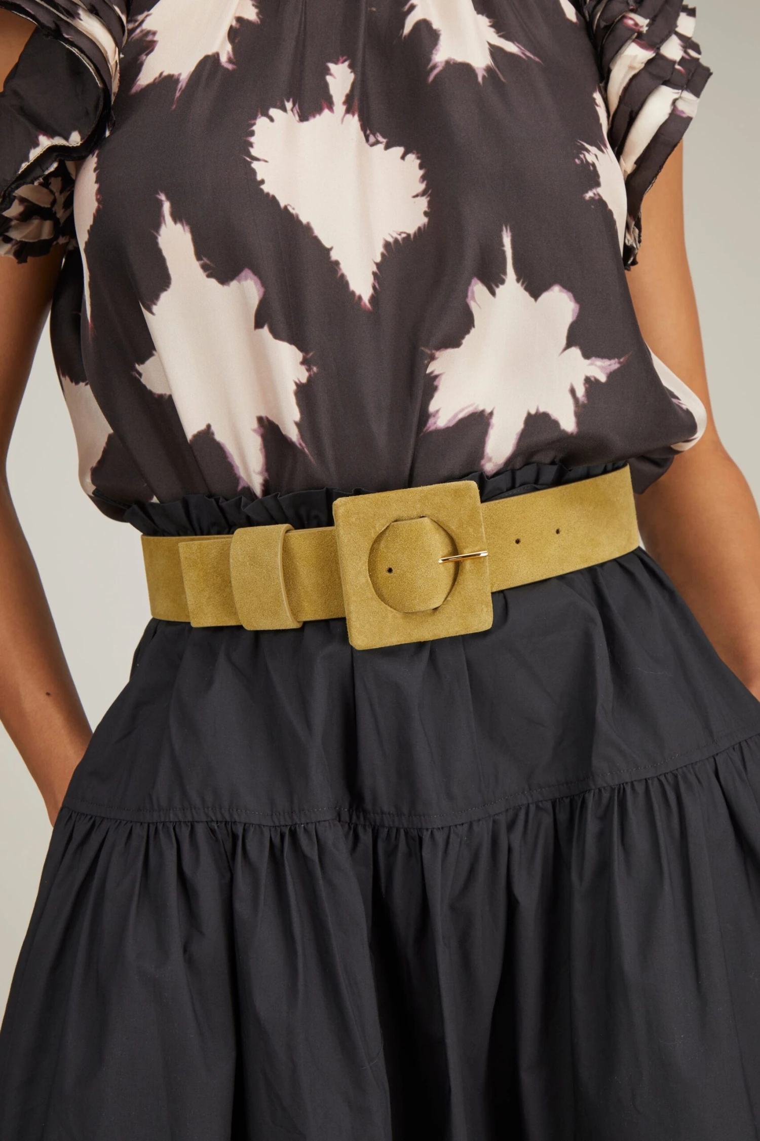 The Lizzie Fortunato Agnes Belt was made to make a statement. This wide belt is crafted in suede with a structural buckle.