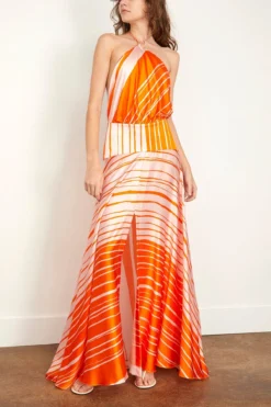 The Silvia Tcherassi Agnese Dress is perfect for your next big event. This gown features beautiful movement with an open back and halter neckline in silk. Wear yours with heels and a shoulder bag.