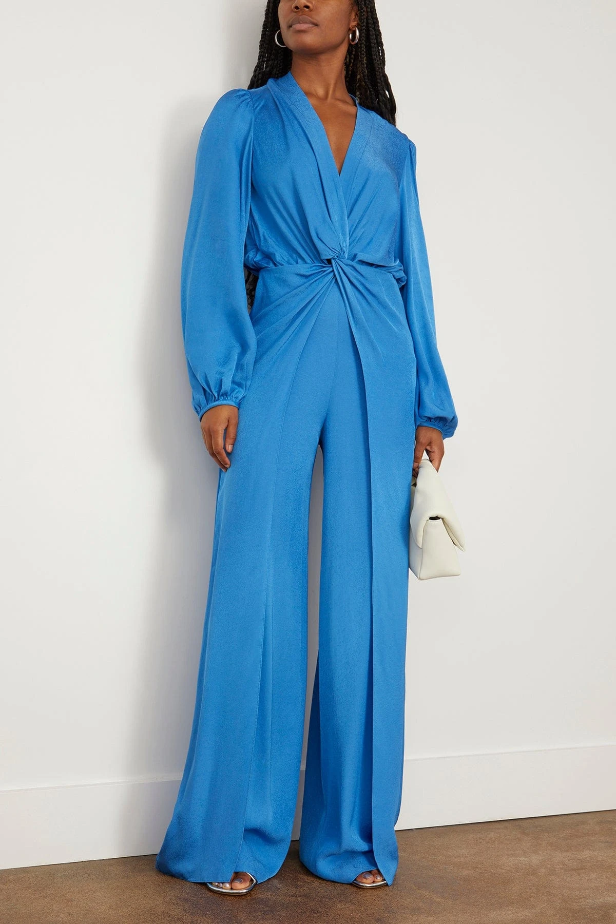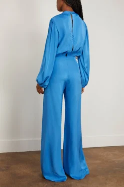 The Silvia Tcherassi Arnetia Jumpsuit has a throwback inspired look you’ll love. This jumpsuit features their signature twist front with wide, tailored legs and a blouson sleeves. Wear yours with heels and a shoulder bag.
