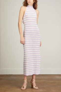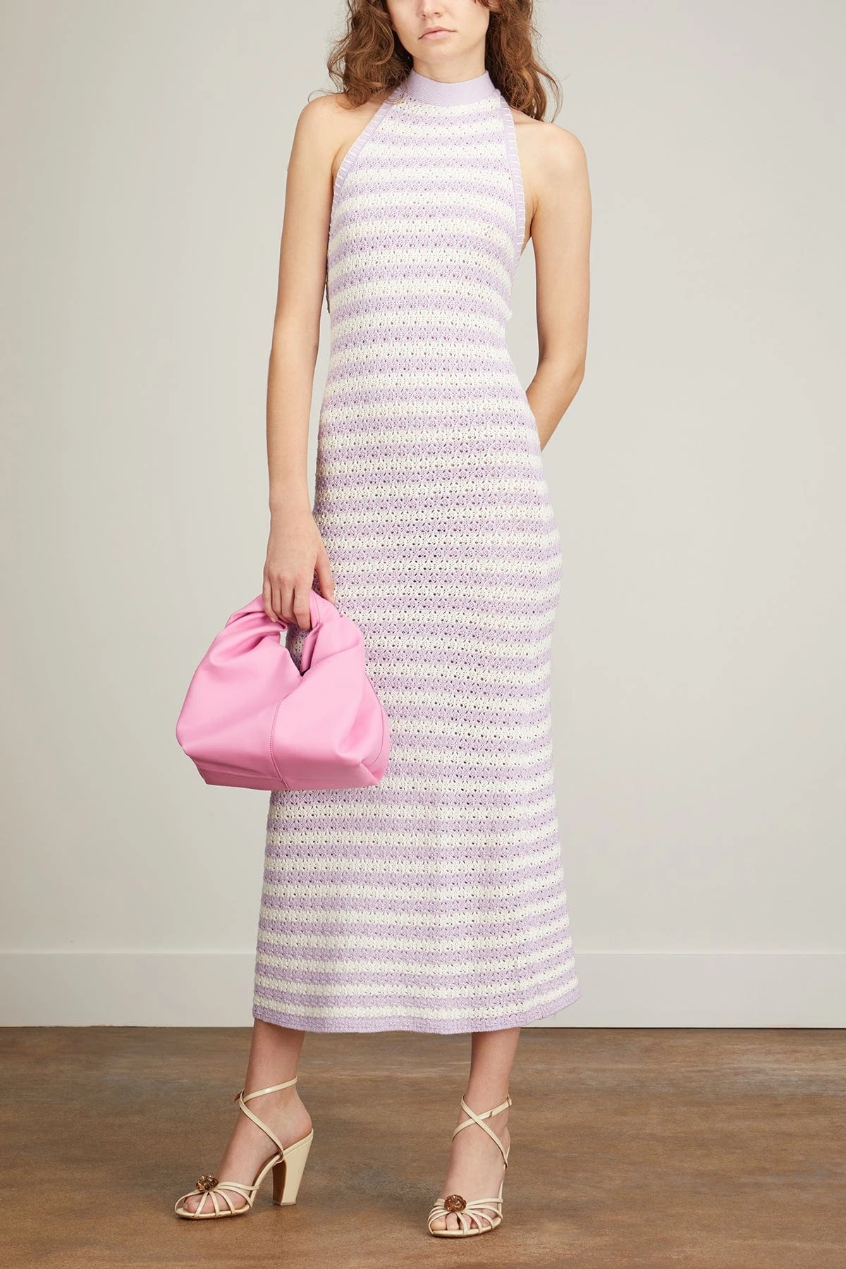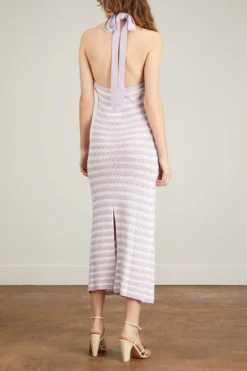 The Kitri Atlanta Halter Knit Dress is the perfect addition for a summer getaway. This crochet knit midi dress feature a halter neckline and flattering slim silhouette. Wear yours with sandals and a shoulder bag.