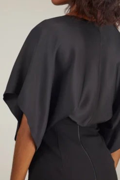 E.STOTT has designed a collection of detachable sleeves and additions so you can customise garments new and old. If you can wear something in more than one way, for different occasions, youll keep it longer and benefit the environment.Draped generously through the shoulders, the Beau caped sleeves are crafted from black chiffon for the perfect flow. They pair beautifully with many dresses and separates.