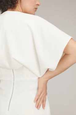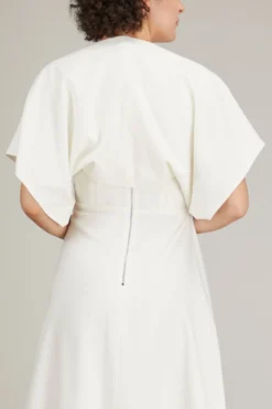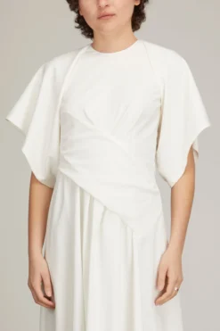 E.STOTT has designed a collection of detachable sleeves and additions so you can customise garments new and old. If you can wear something in more than one way, for different occasions, youll keep it longer and benefit the environment. The E. Stott Beau is an ivory colored silk-satinaddition that is draped generously through the arms it’s a perfect addition to E.STOTT Susannah dress.