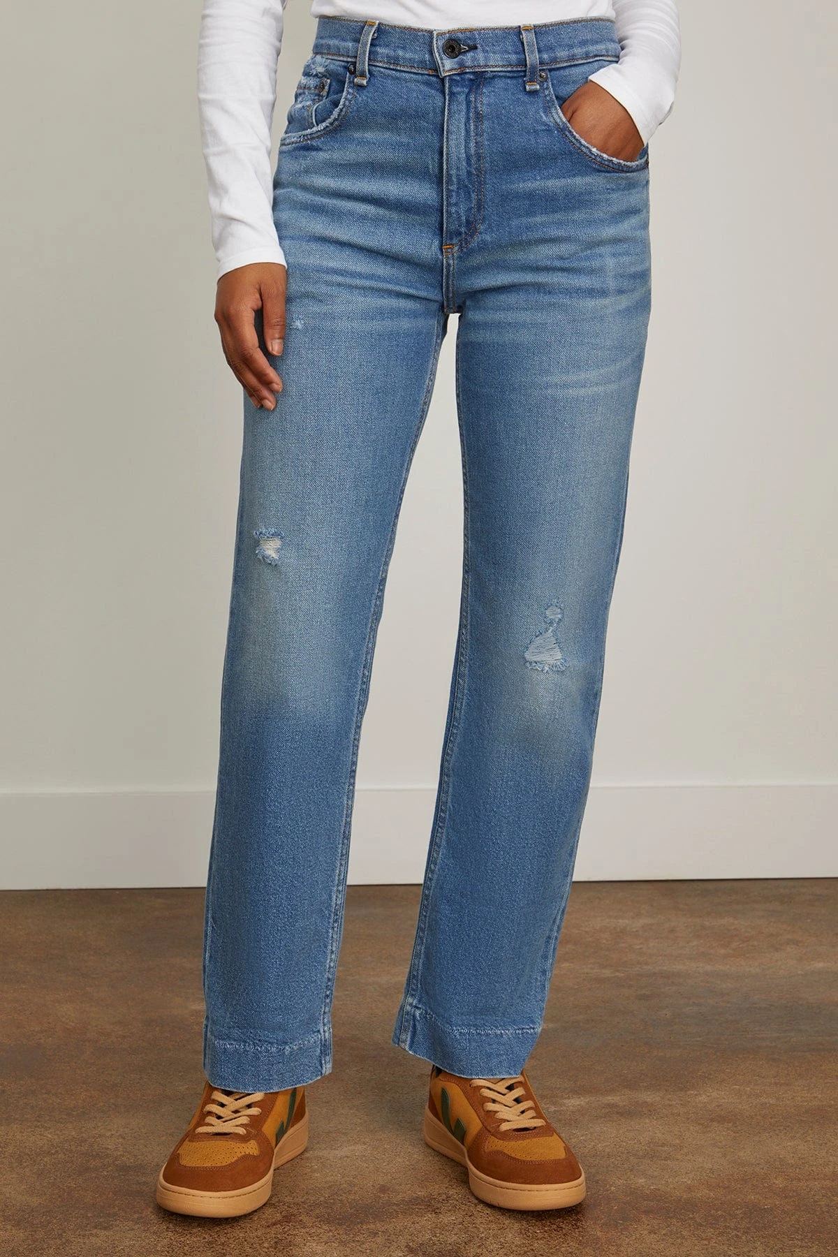 The Askk NY Beau Jean in Cactus is a low slung relaxed straight leg fit in a light weight super soft non stretch denim.