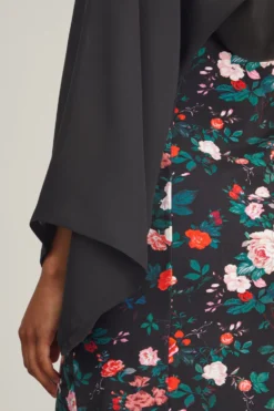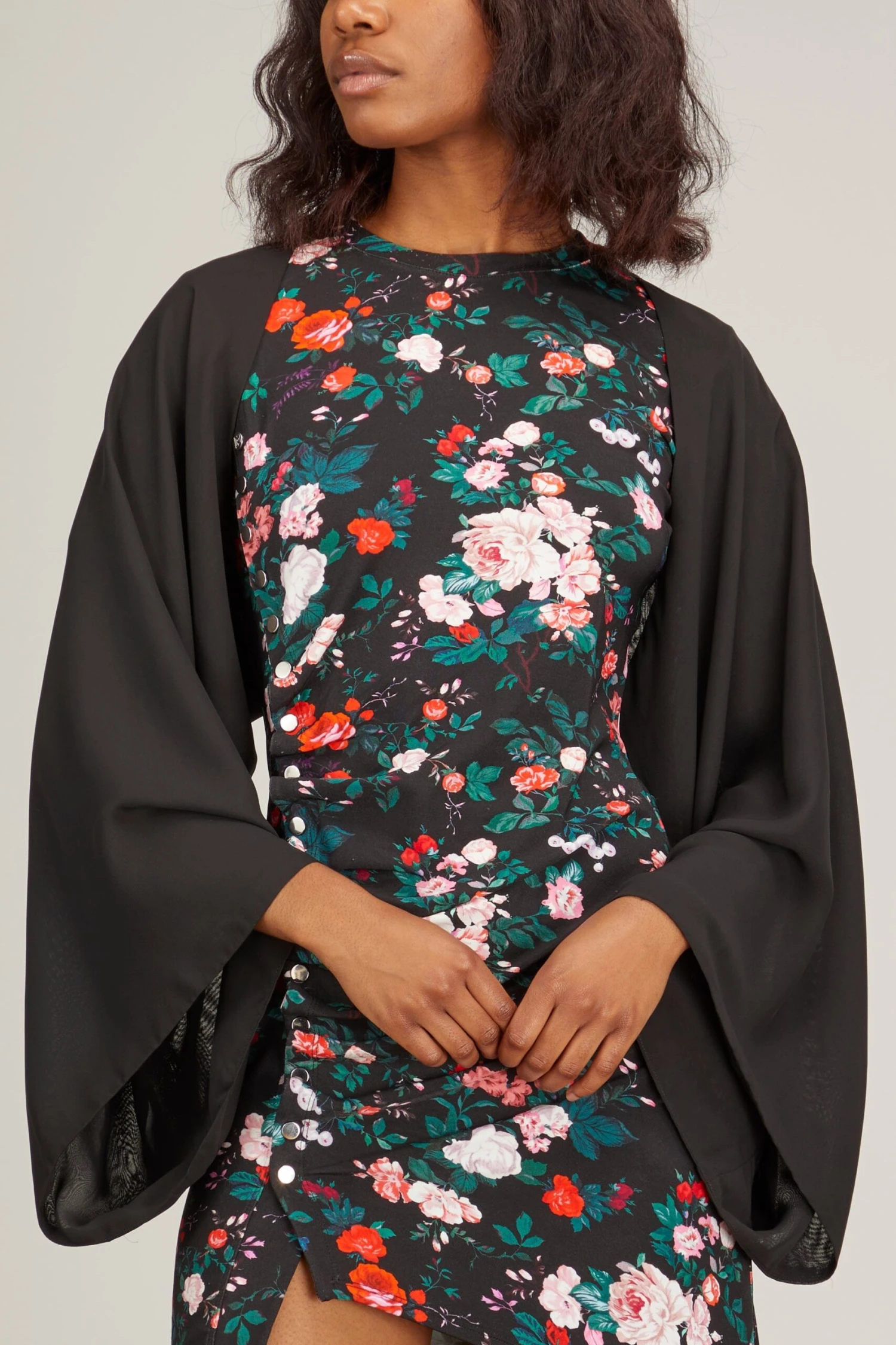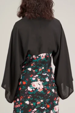 The E. Stott Beau Long Sleeve Addition in Black is a long sleeve chiffon shawl jacket.