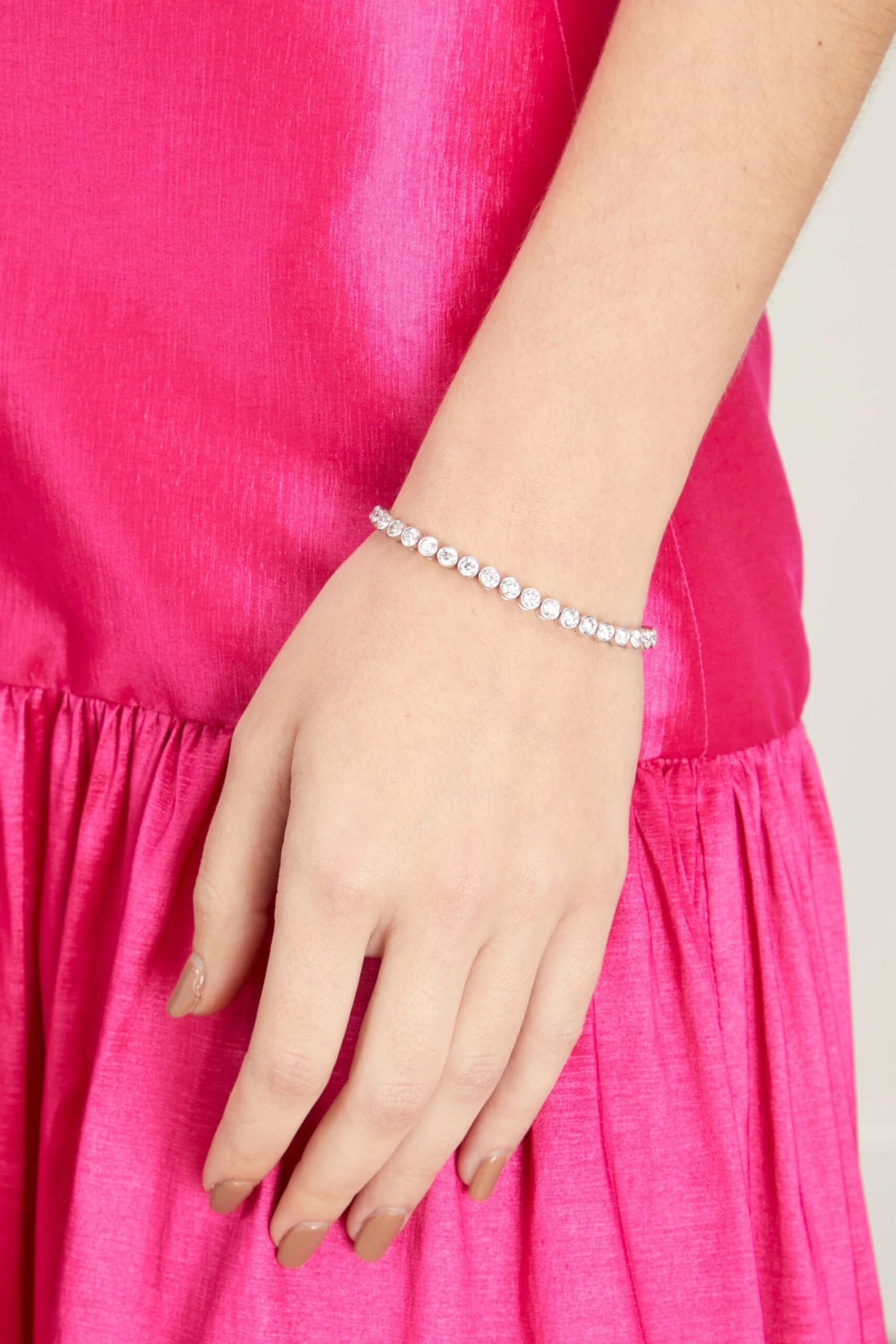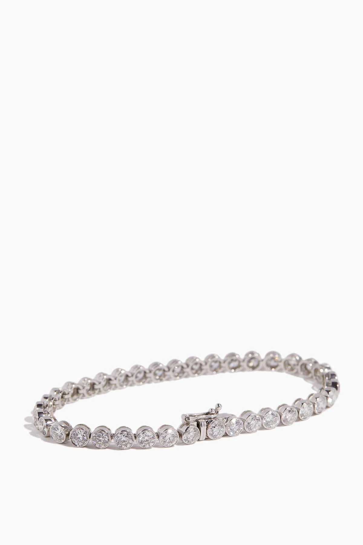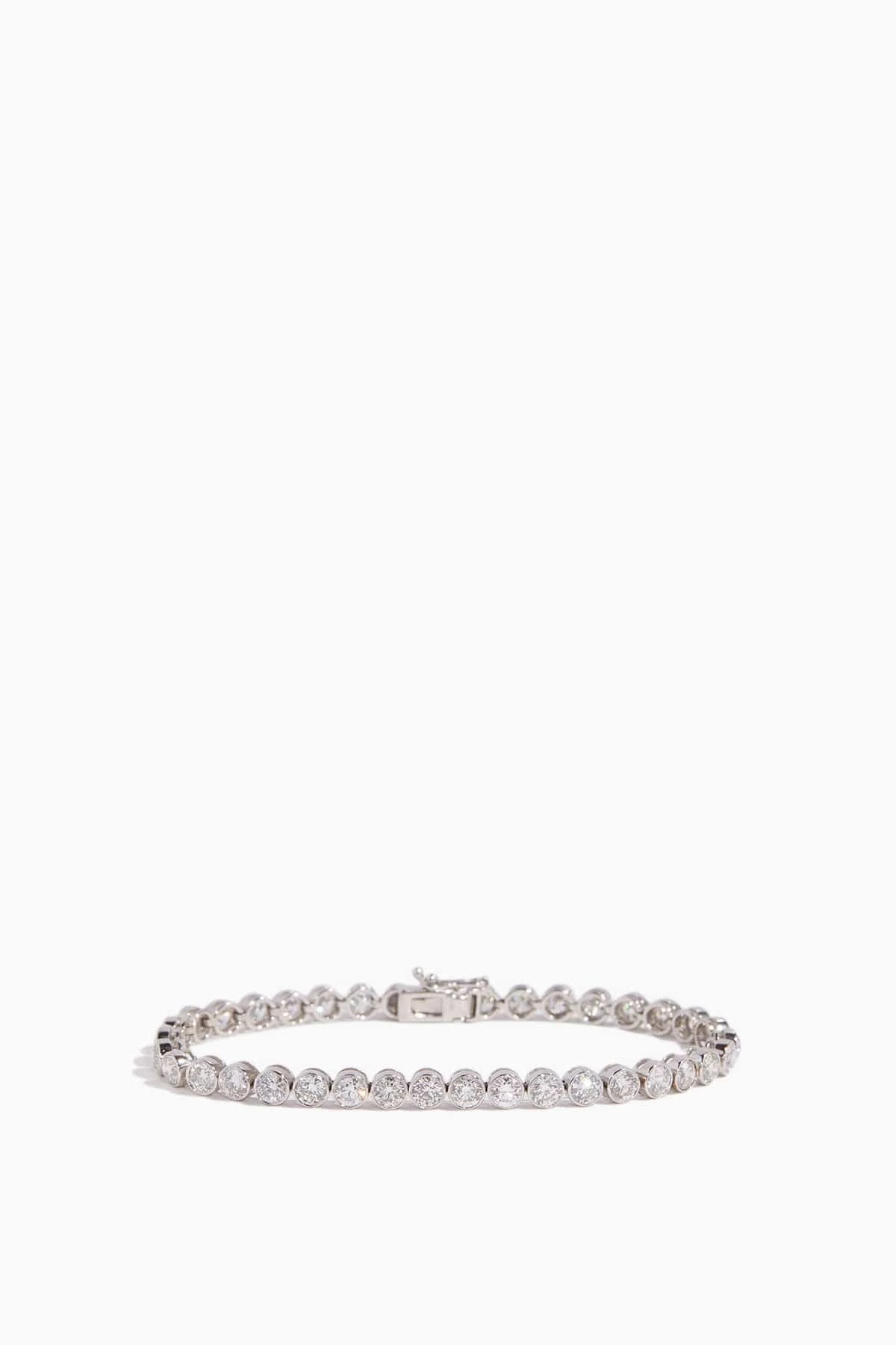 The Stoned Bezel Set Round Diamond Bracelet in 14k White Gold features round diamonds set in 14k white gold.