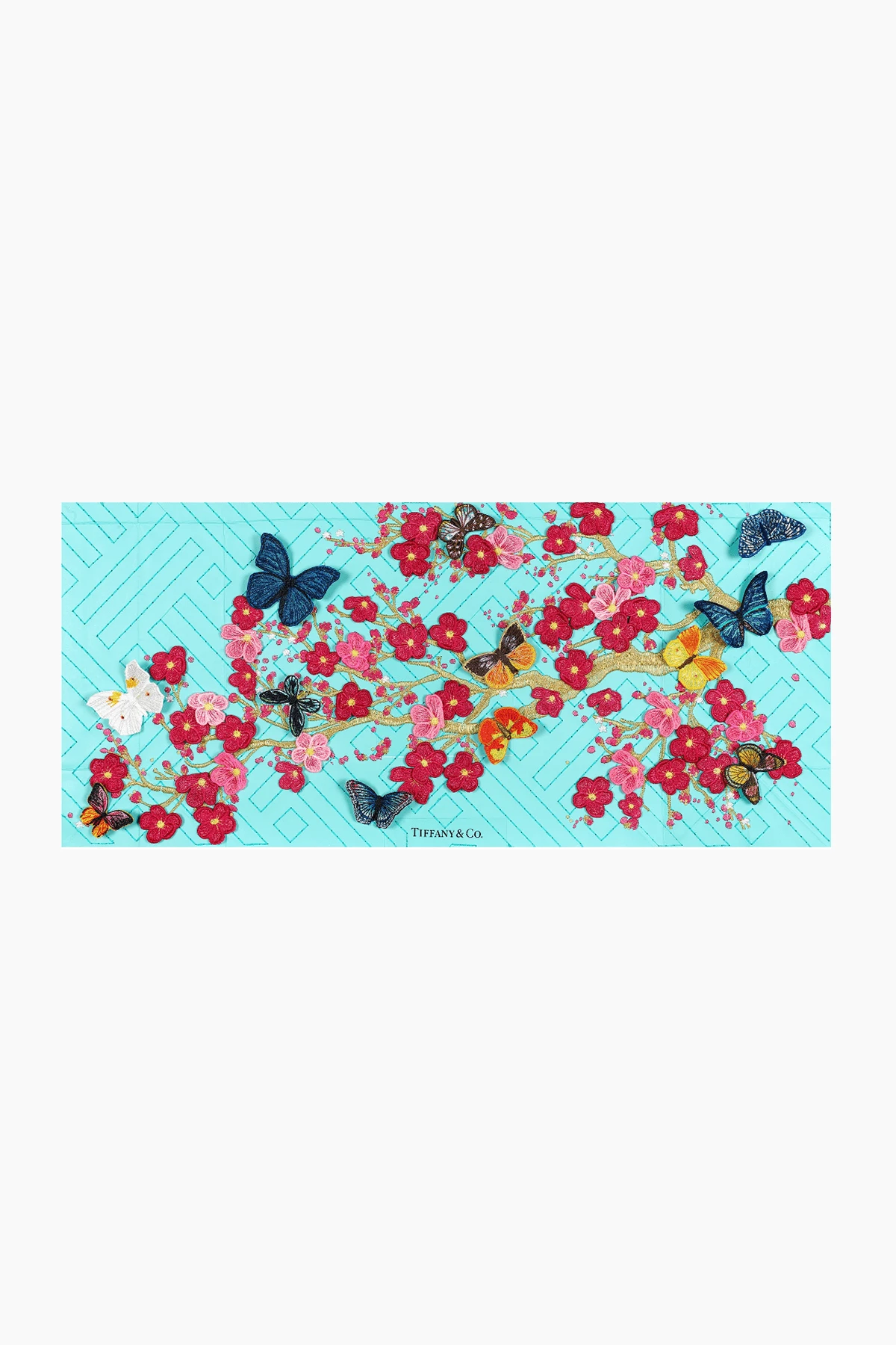 Embroidery stitched directly through collaged luxury boxes with 3D embroidered butterflies and tapestry.