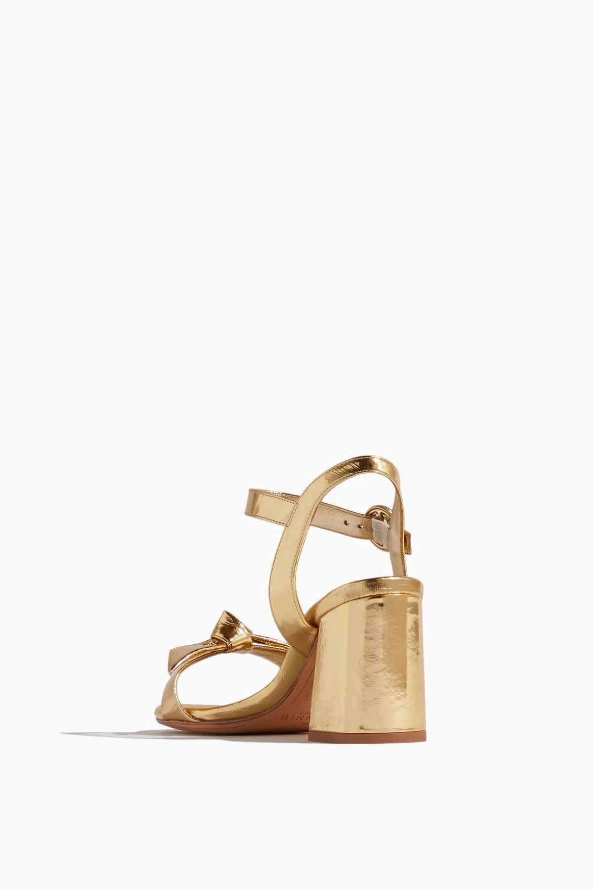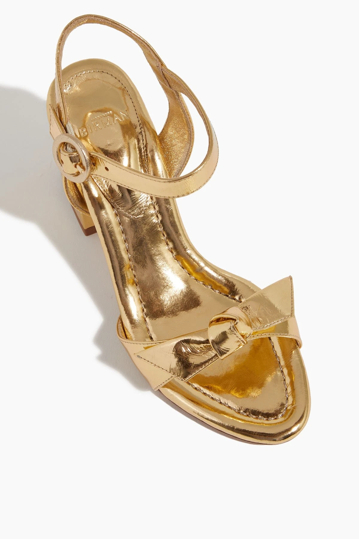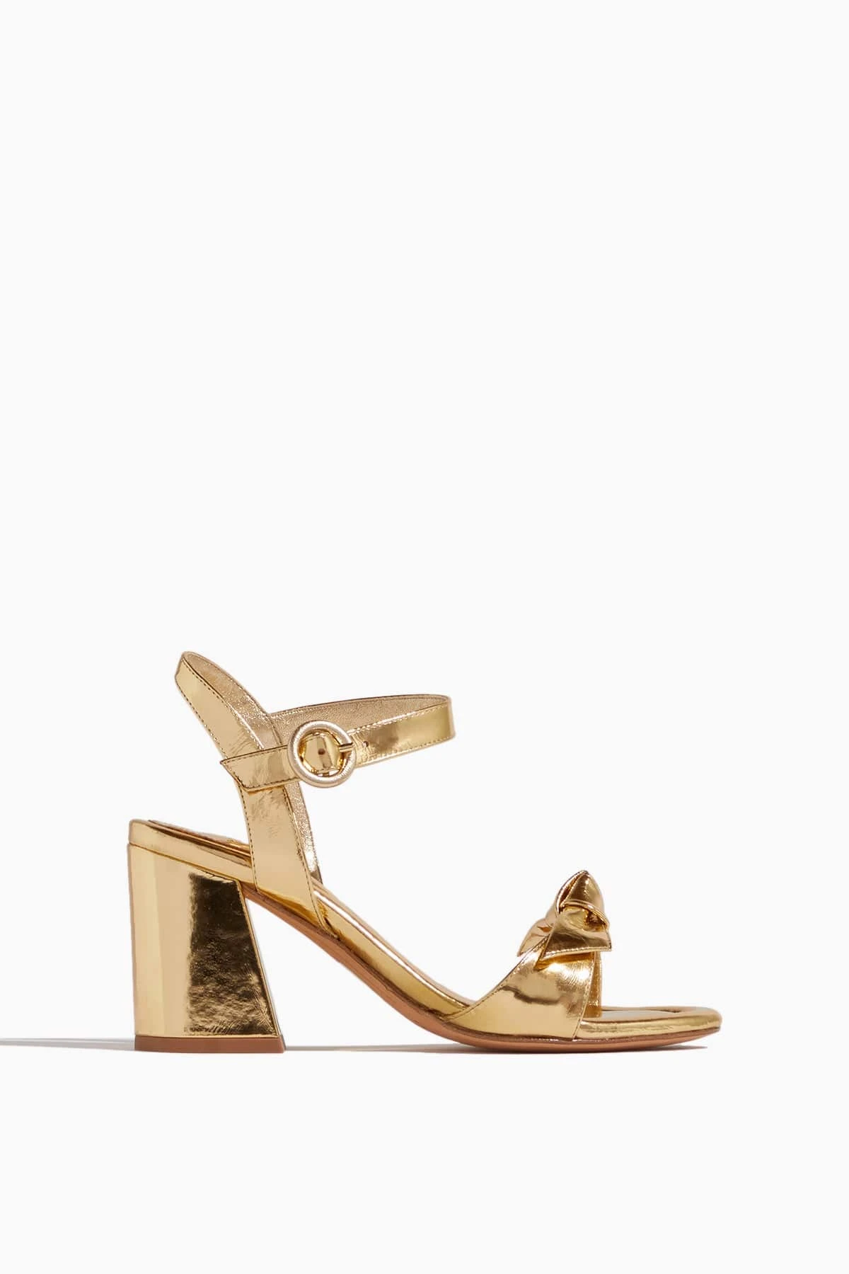 The Alexandre Birman Clarita 75 Flare Sandal will have you ready for an evening out. This sandals are crafted in a bold metallic leather with a block heel and their signature tie detail.