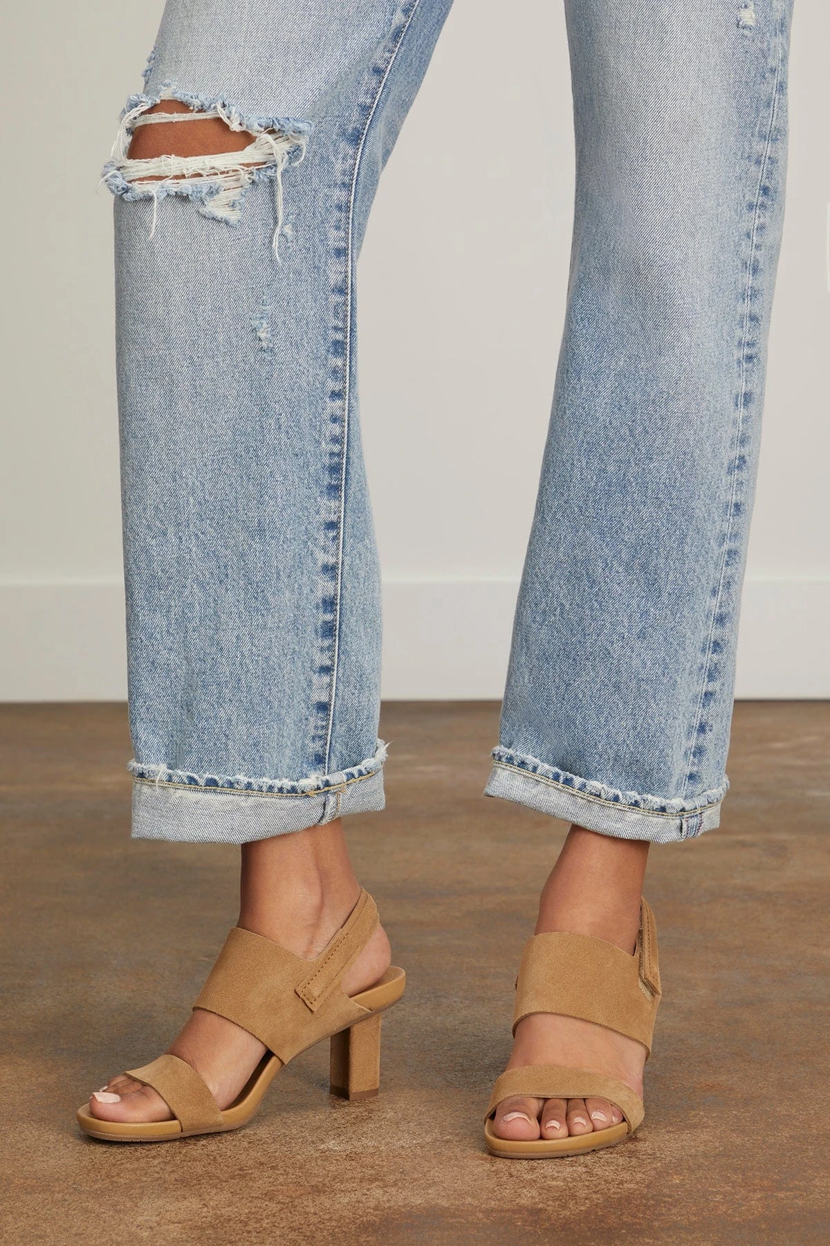 The Pedro Garcia Collins Heel features the casual look you love from this designer. These heeled sandals are crafted in supple suede with a velcro back strap and block heel for comfort and style.