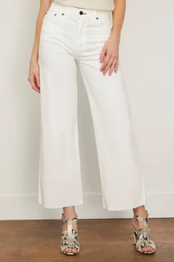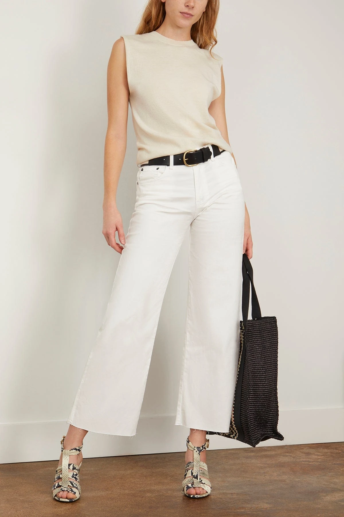 The Askk NY Crop Wide Leg Pant in Ivory is a high rise crop wide leg with raw hem.