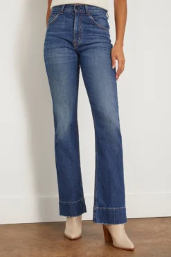 The Askk NY Cruz Boot Jean in Marcos is a high-rise boot cut. This cut features the Askk NY staple detail of the no-gap waistband. We love this classic style worn with your favorite cardigan and tote.