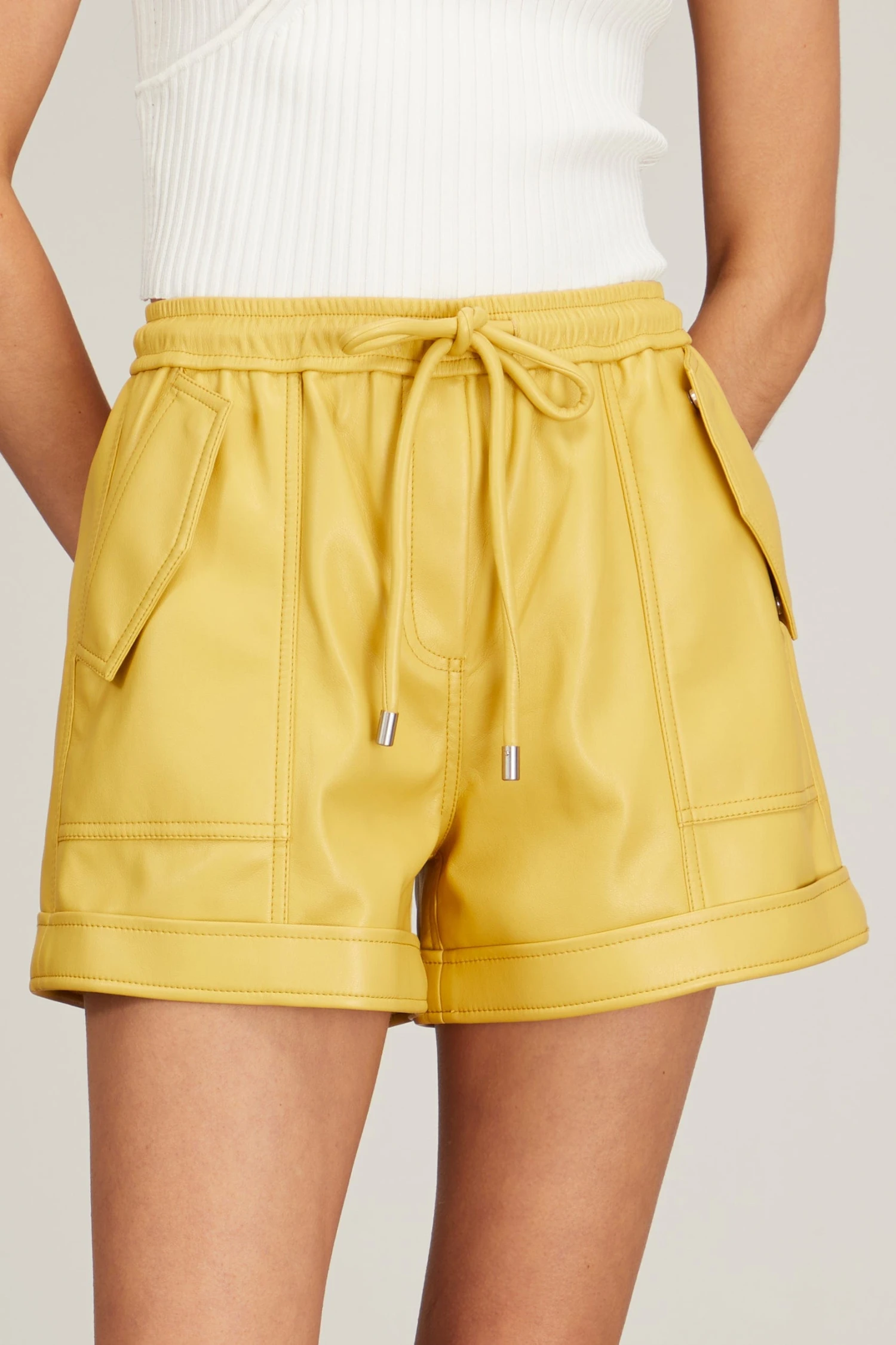 The Jonathan Simkhai Doah Drawstring Short will be a staple in your spring and summer wardrobe. These vegan leather shorts feature a relaxed silhouette with a drawstring waistband. Wear yours with a blouse tucked in.