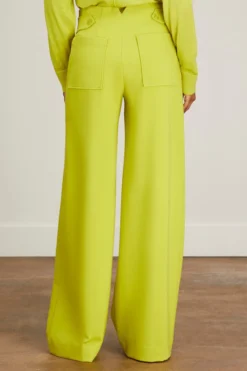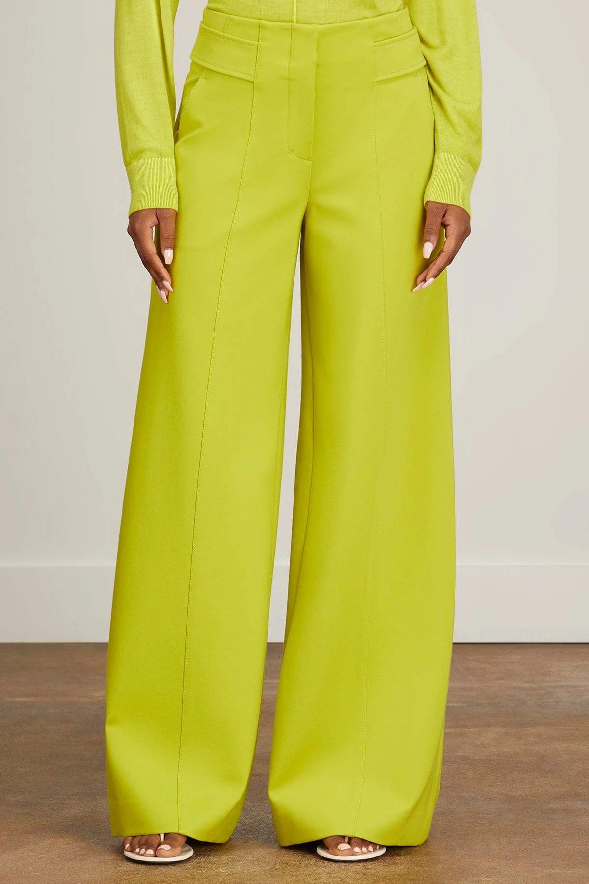 The wide leg pants are crafted in our favorite Punto Milano. The easy style has side tabs and a dividing seam down the front of the leg.