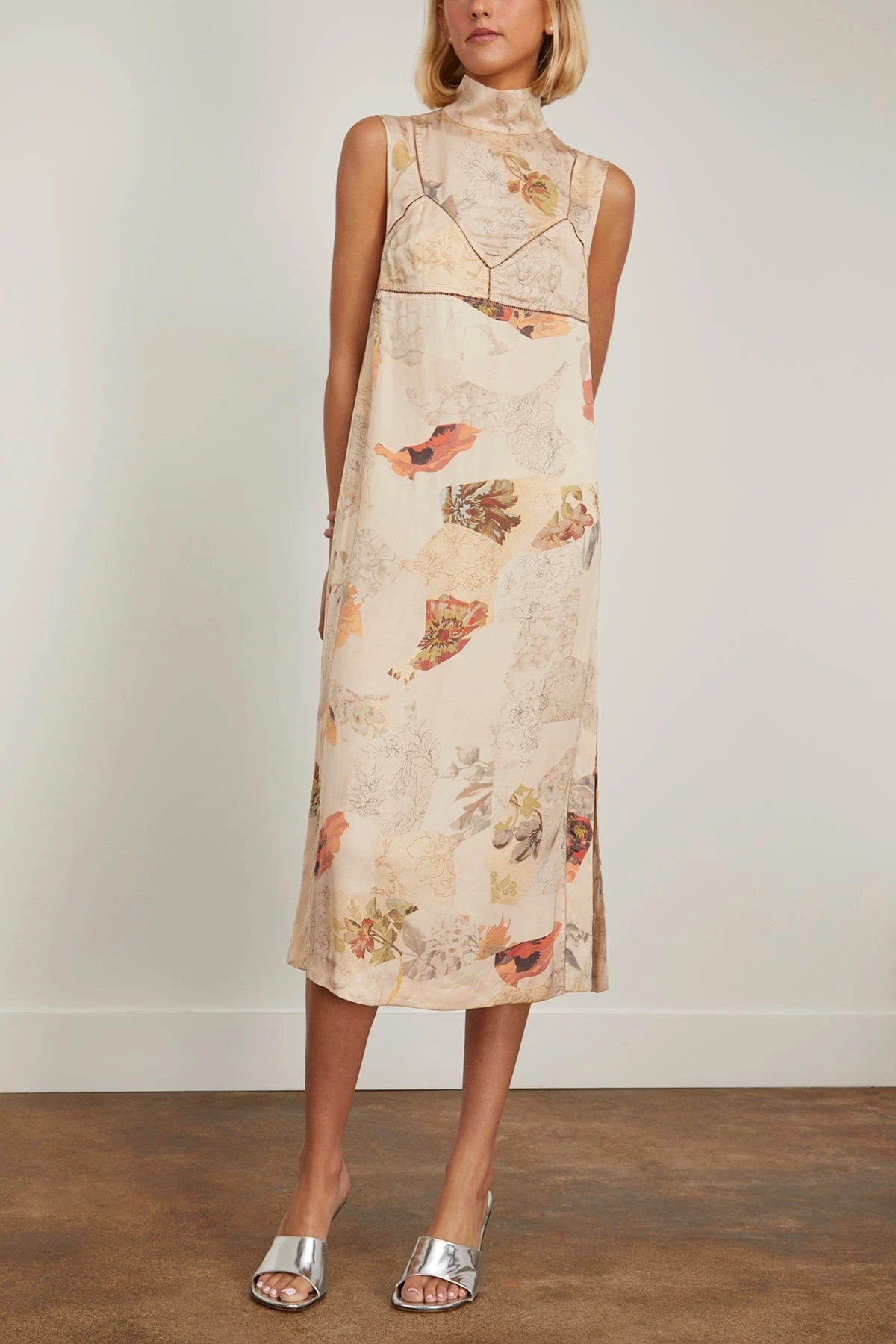 The Dries Van Noten Daras Dress in Ecru is a floral-print dress featuring a contouring inlay ladder trim. We love this feminine dress with heels and a clutch.