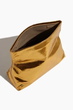 The Dries Van Noten Folded Clutch in Gold is a folded leather clutch with leather lining.