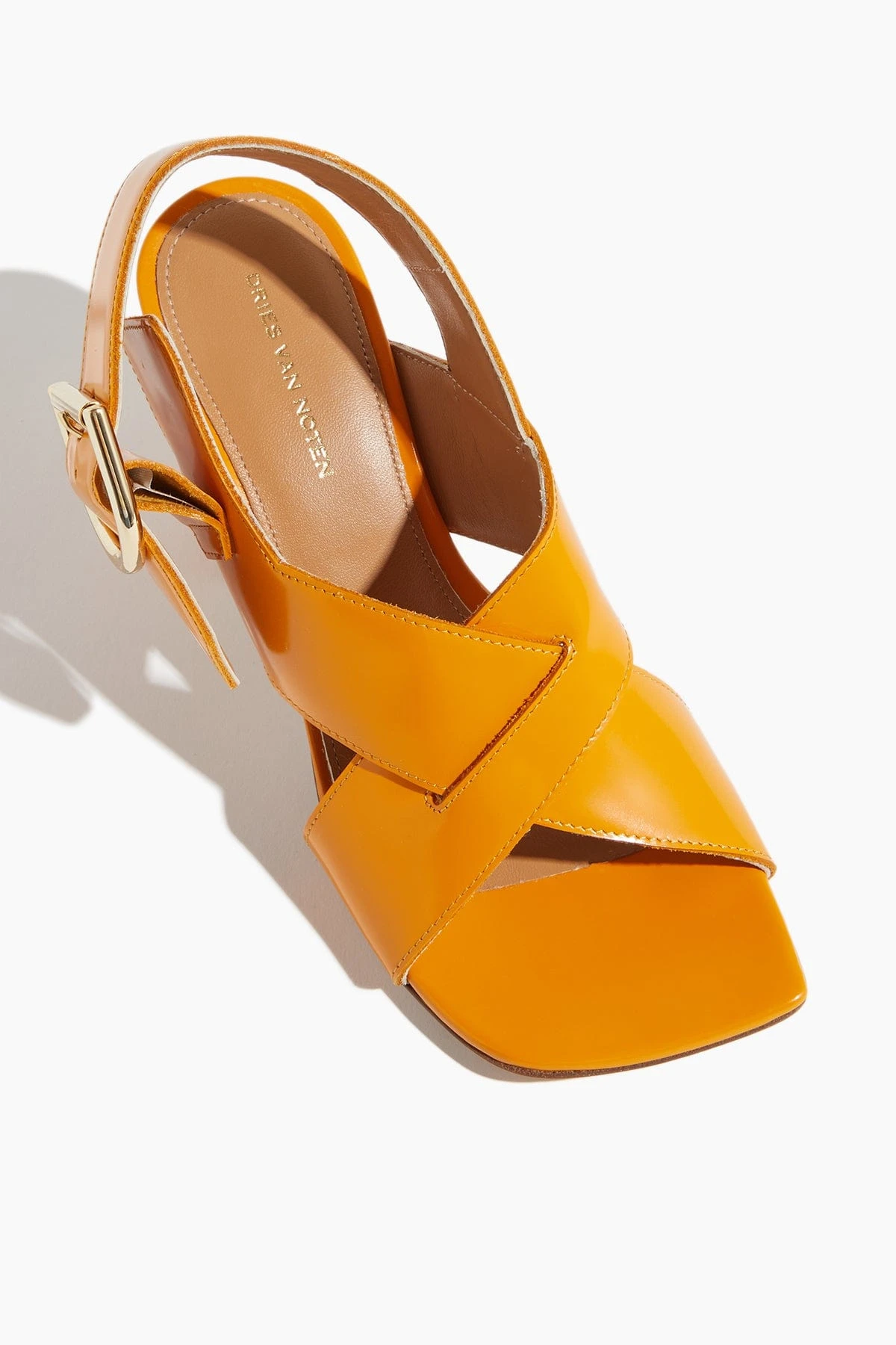 The Dries Van Noten Heel in Orange are a bold take on a classic. You’ll love the crossover front of these block heels in orange.