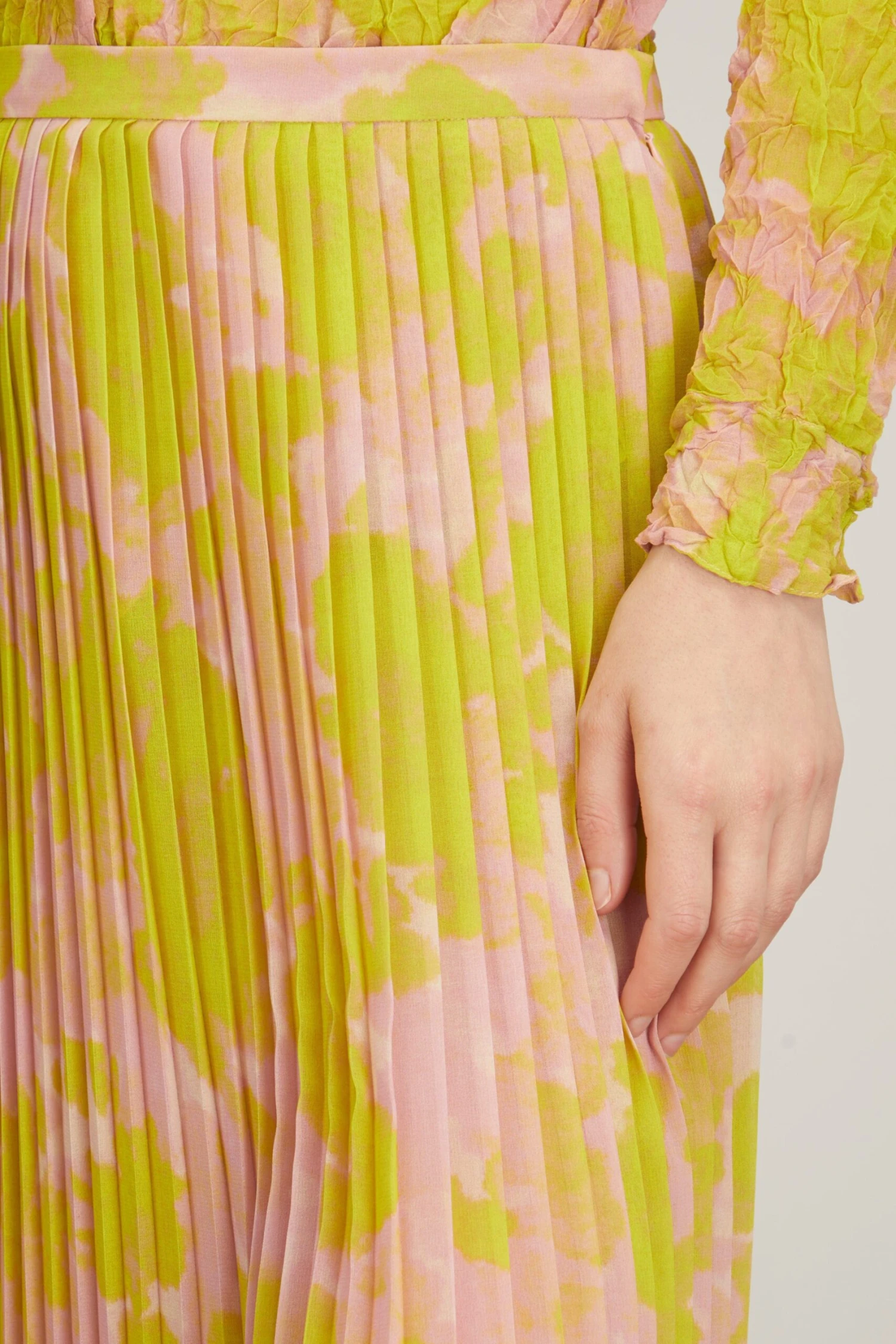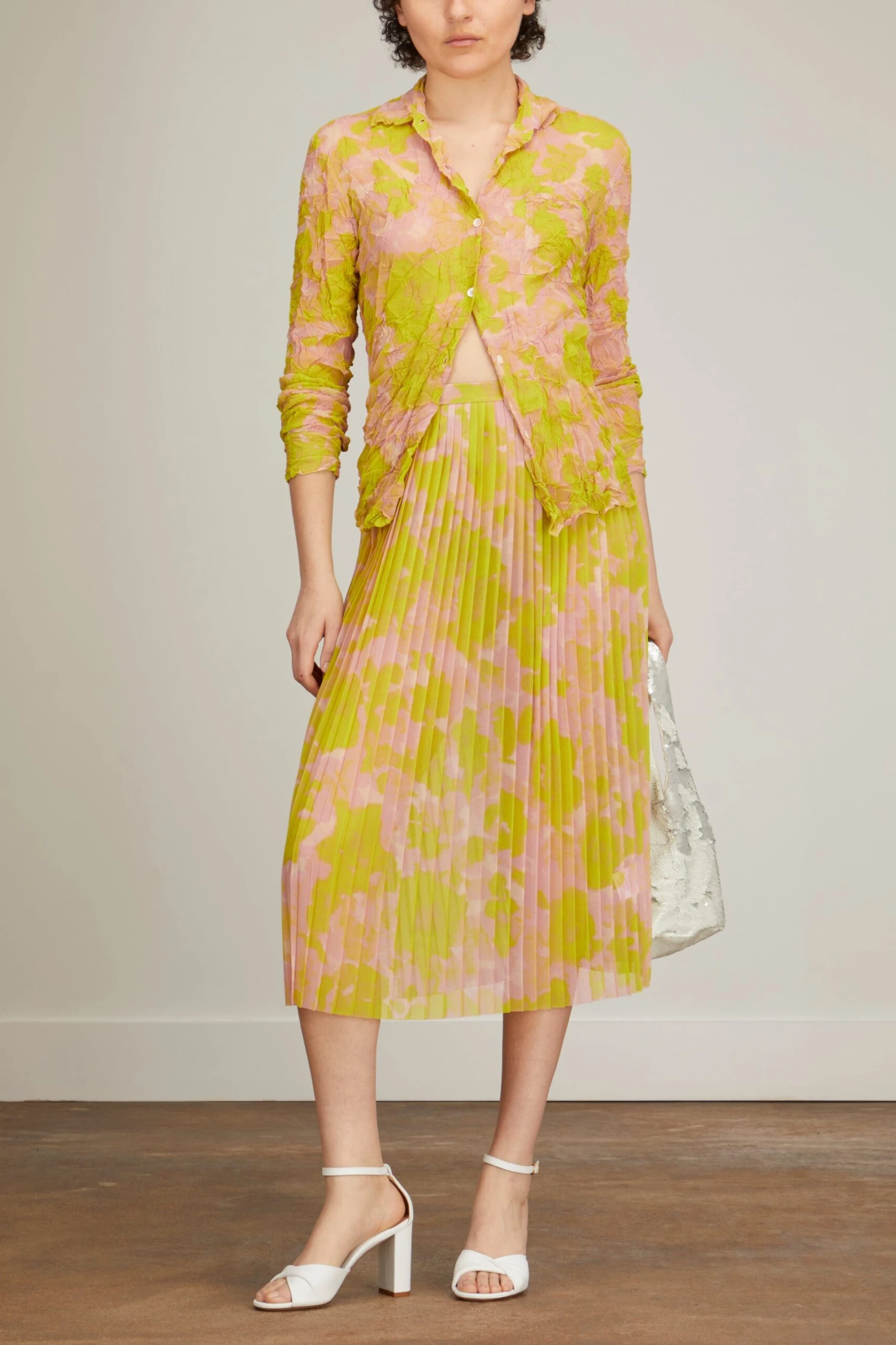 The Dries Van Noten Sarean Skirt is a beautiful piece from their Spring 23 Collection. You’ll love the abstract print of this midi skirt with allover pleating. Wear yours with the matching blouse and heels.