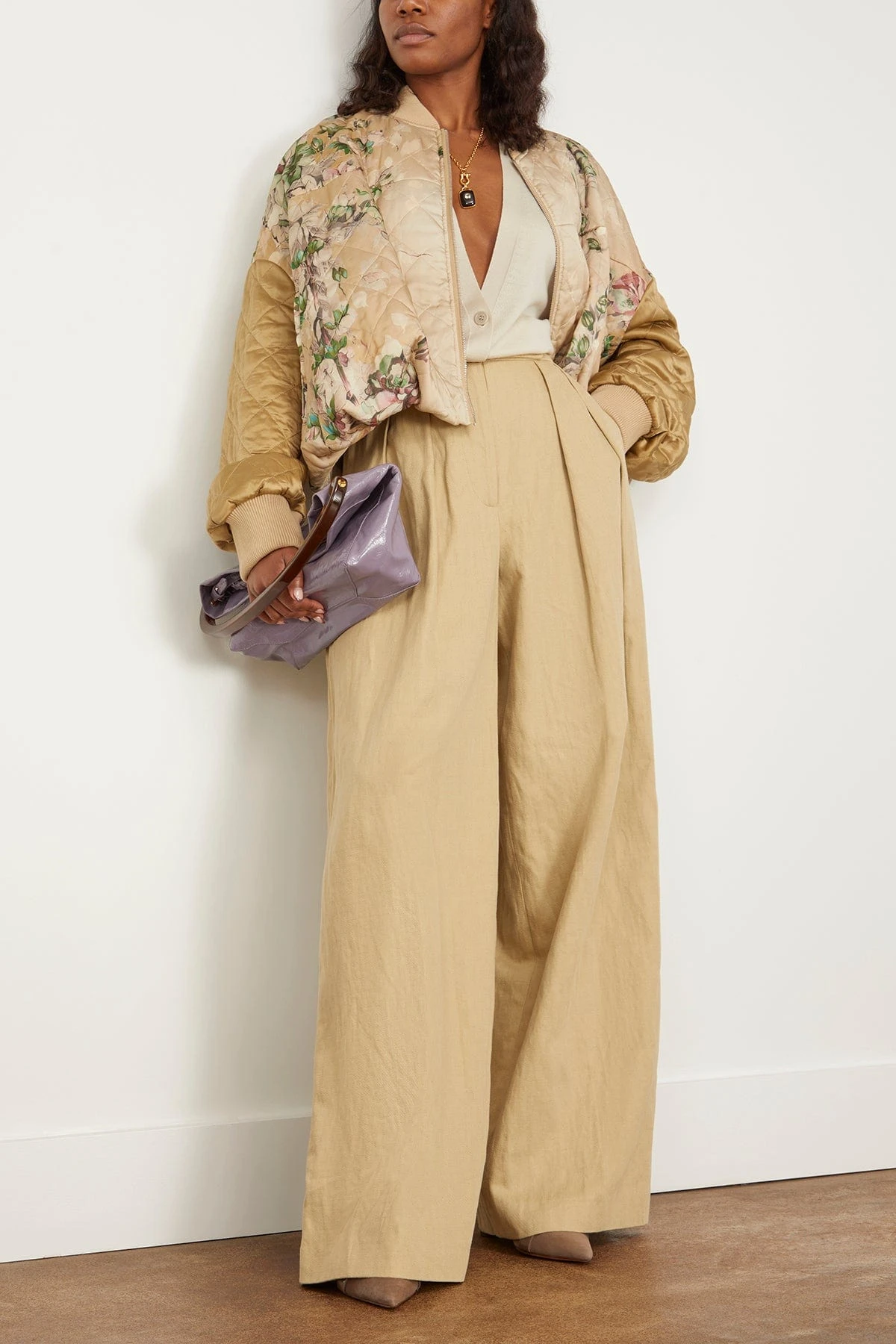 The Dries Van Noten Veston Jacket in Ecru is decorated in watercolor-style bouquets. This quilted bomber jacket is made from lightweight shell and has contrasting dropped sleeves. We love it paired with a clean white t-shirt and jeans.