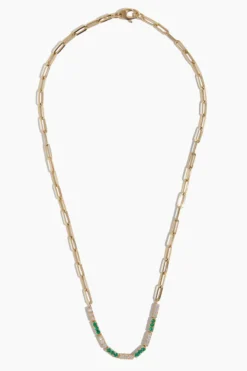 Emerald And Diamond Paper Clip Necklace In 14K Gold