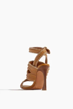 The Alexandre Birman Erika 100 Sandal in Butterscotch features delicate hand-embroidery on supple leather. With its statement silhouette, this expertly-designed style features a curved 100mm heel, supportive ankle strap, and round toe finish. Ideal for modern women who understand the power of artisanal detailing, this beautifully crafted piece carries a fashion-forward aesthetic combined with timeless versatility.