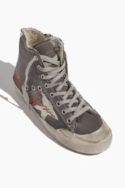 The Golden Goose Francy Penstar Sneaker are a great addition to your sneaker collection. You’ll love the high top and side zip of these sneakers with their signature distressed detailing and the golden goose logo.
