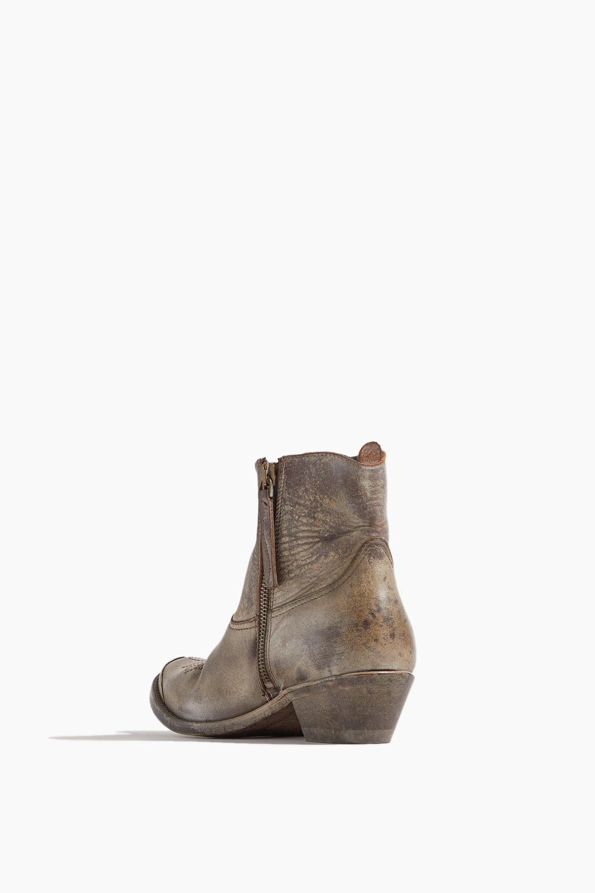 Your favorite western inspired boots are back. The Golden Goose Young Boot in Brown have a pointed toe and block heel with distressed leather.
