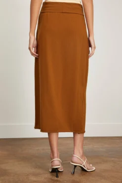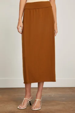 The Labo.Art Gonna Penna Charme in Cumino is a pull on midi skirt with elastic waist and relaxed fit.This knit skirt features a classic pencil silhouette with a pull on style. Wear yours with a sweater and boots this season.