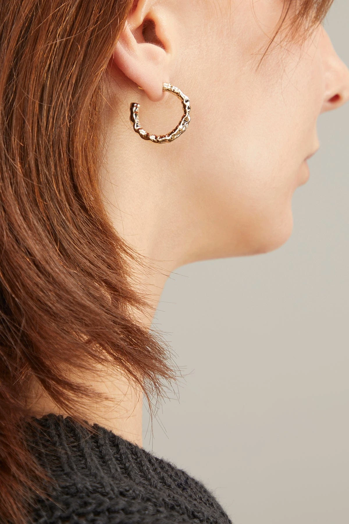 The Jennifer Fisher Hailey Huggies are not your average huggie hoops. You’ll love the textured plated yellow gold of these huggie hoops.