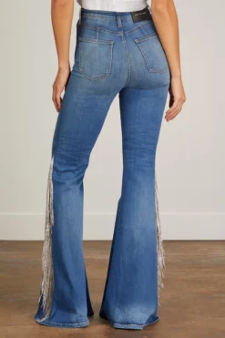 The Cout De La Liberte Heidi Sling Super High Rise Super Bell Trouser are like nothing else in your wardrobe. These jeans feature their signature ultra flared leg with playful embellishing at the sides. Wear yours with a blouse tucked in.