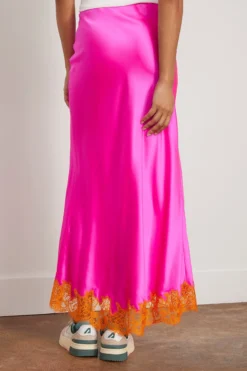 The Dannijo High Slit Lace Applique Skirt in Hot Fuschia makes it easy to glide into any occasion with effortless poise.We love it paired with a silky tank and a clutch.