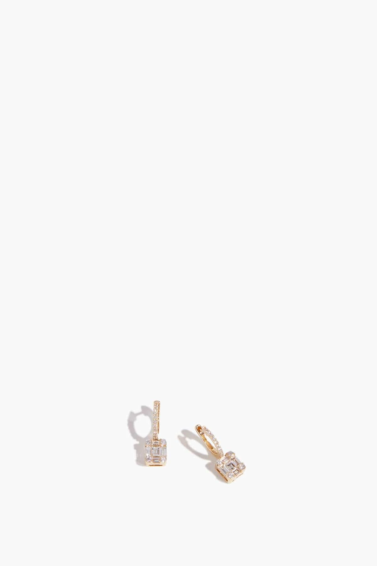 The Vintage La Rose Illusion Drop Huggies in 14k Gold features baguette and pave diamonds.