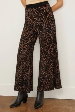 The Rachel Comey Jinx Pant are a standout piece from their Fall 23 Collection. You’ll love the bold, swirled print of these knit pants with a high rise and wide leg. Wear yours with the matching top and boots.