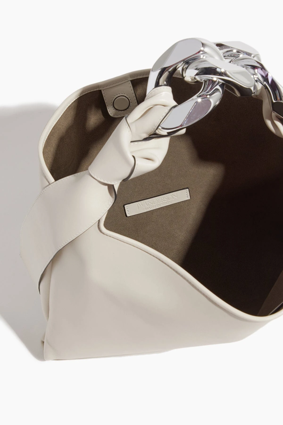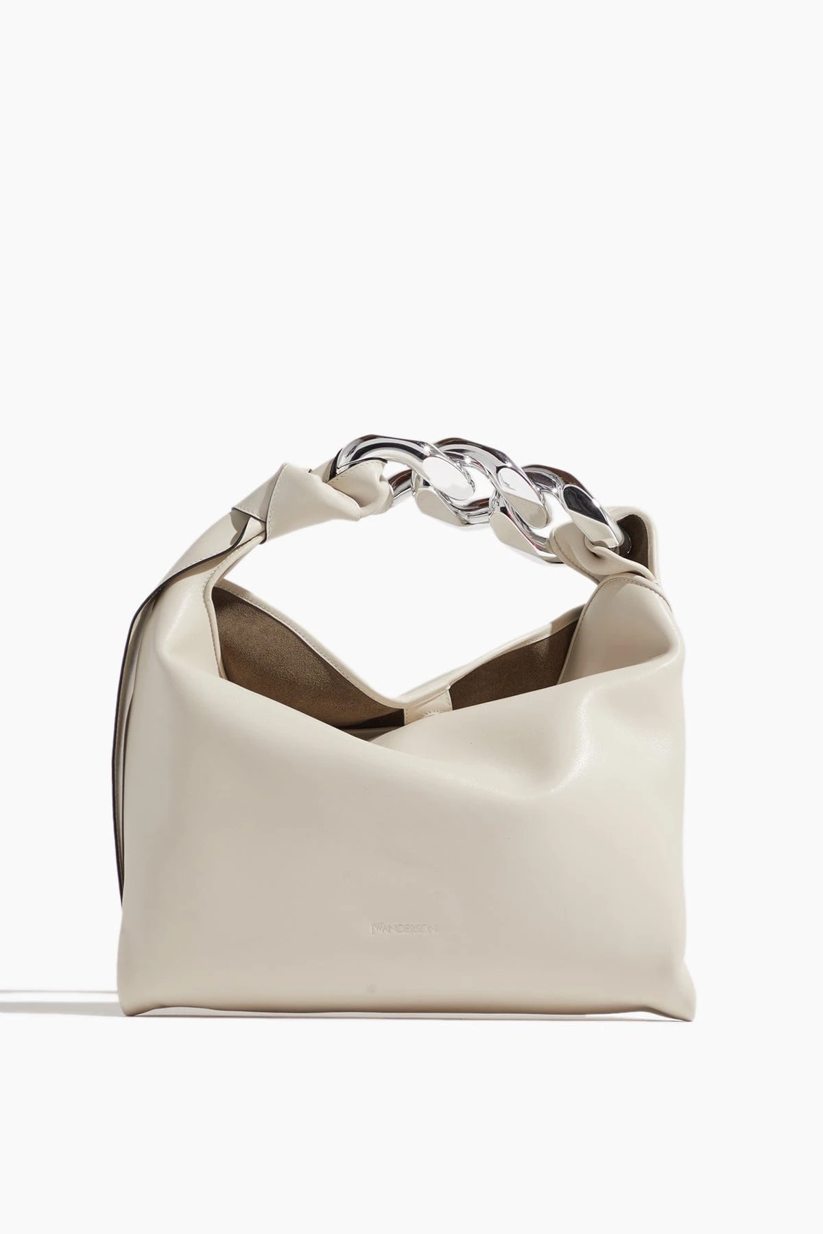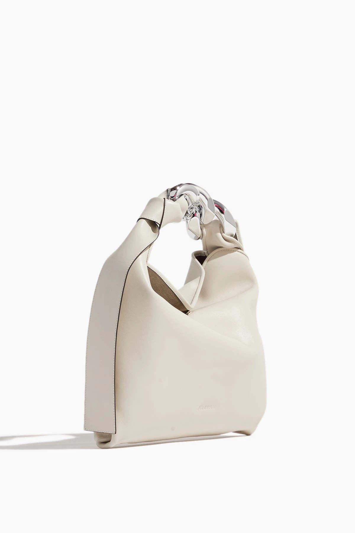 The Your favorite bag is back. The JW Anderson Small Chain Hobo Bag in Off White is crafted in soft leather with a chain strap detail and hobo style.