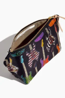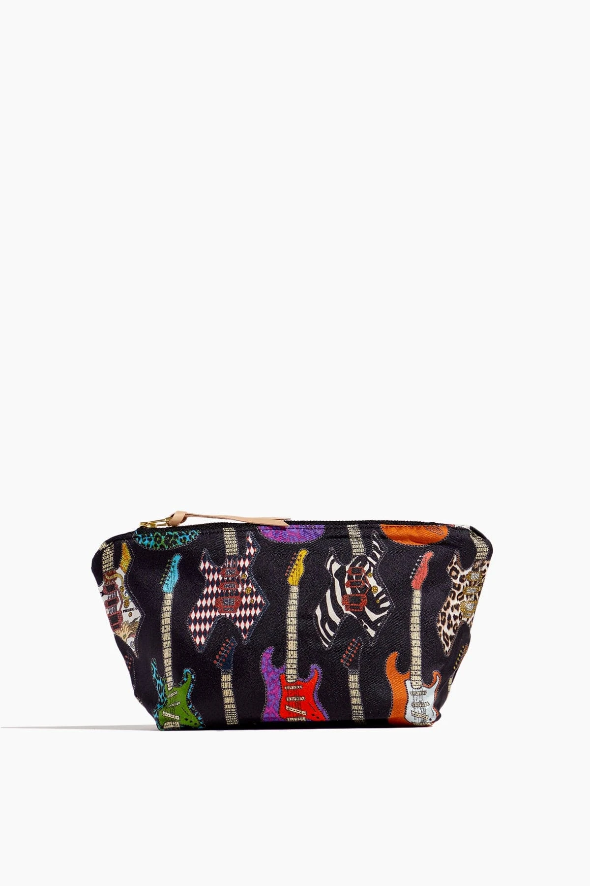 The La Prestic Ouiston Make Up Pouch is a punchy way to store your essentials. This makeup pouch features a roomy interior with a zip top in a bold guitar print.