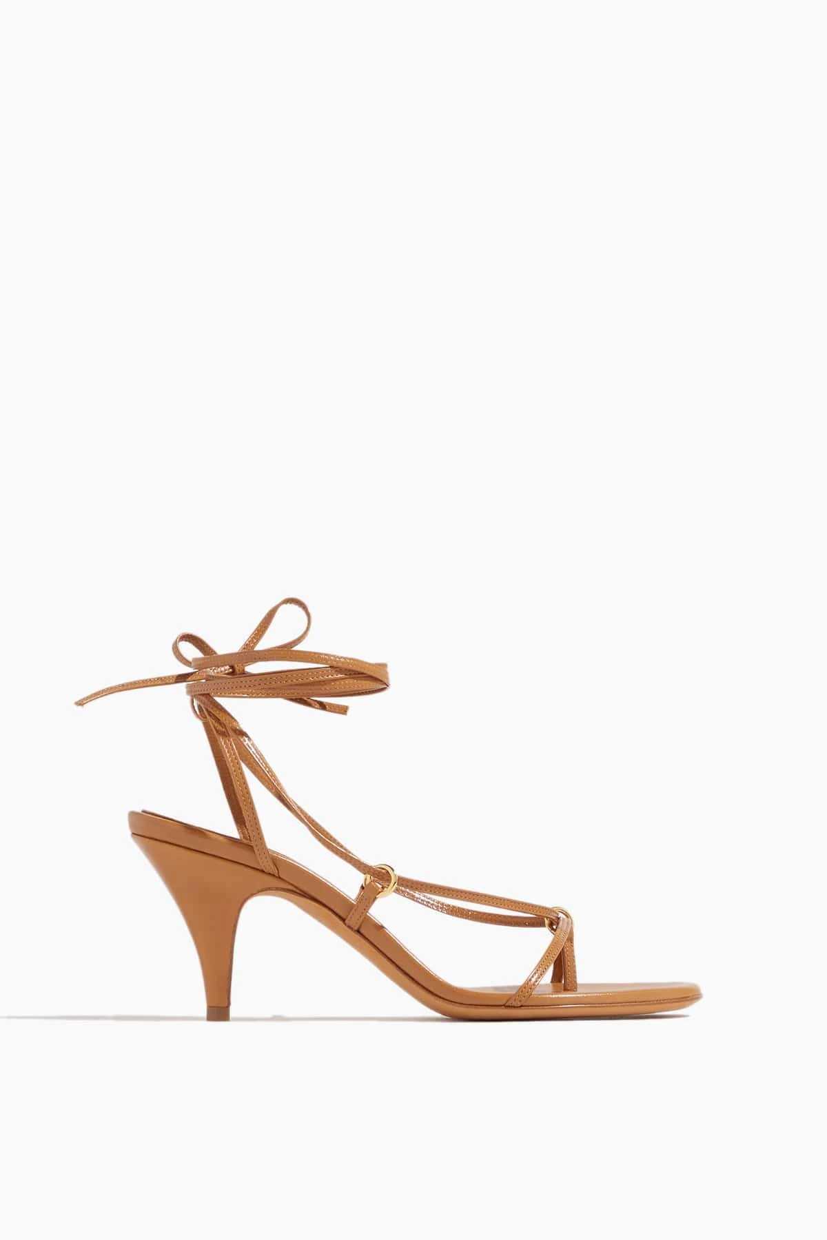 Debuting with Khaite’s Pre-Fall collection’s wardrobe of intuition, this streamlined sandal is designed to be in dialogue with the lines and curves of its wearer. A graceful web of leather laces secured by gleaming gold-toned rings secures the foot and loops around the ankle. Exquisite Italian craftsmanship is revealed in the impeccable construction, which includes a refined toe post, tonal topstitching, and a leather insole.