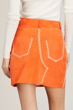 The Marni Five Pocket Mini Skirt in Alkekengi has a mod silhouette you’ll love. This leather mini skirt features a flared silhouette with a classic high rise. Wear yours with a sweater and boots.