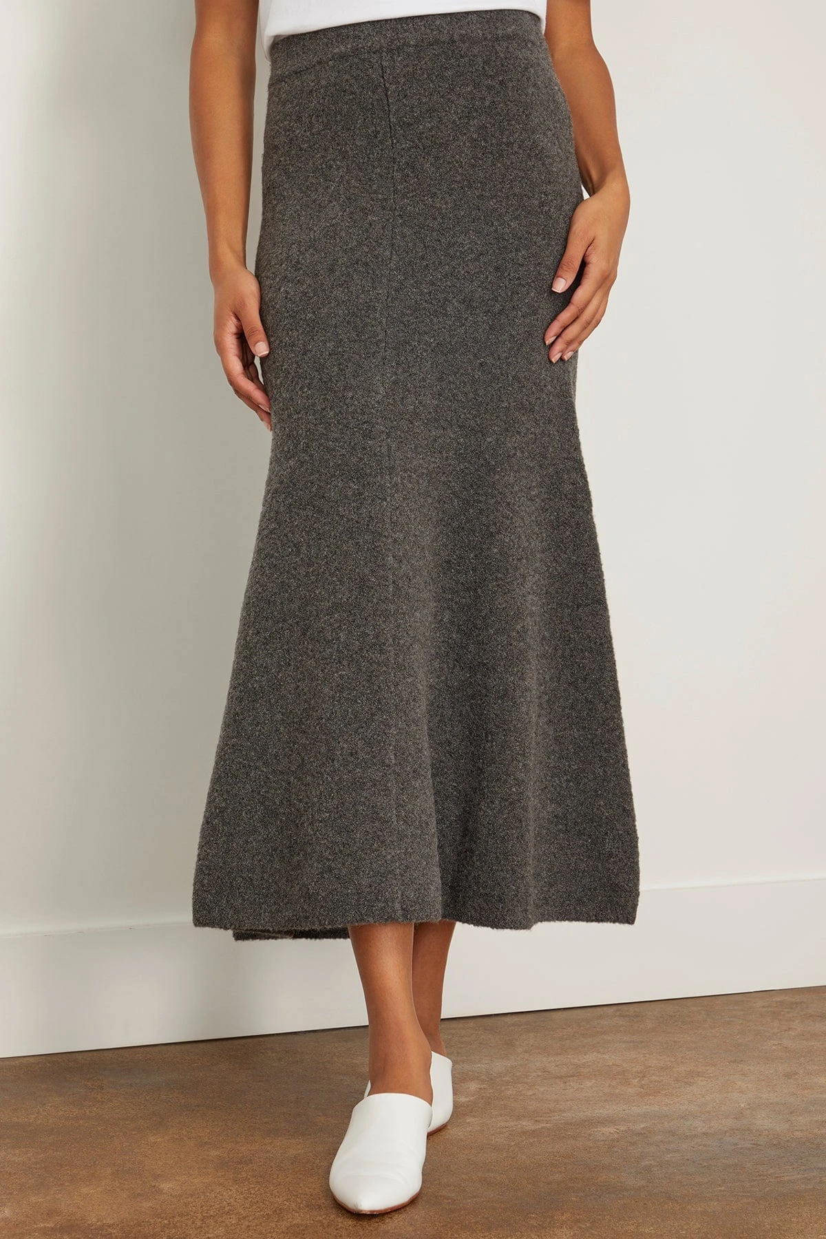 The Clea Marta Boucle Skirt is crafted in a luxurious wool blend knit featuring a boucle yarn which is soft to the touch and has a beautiful raised fluffy appearance. This flattering silhouette is feminine and fitted before it opens into a fuller hemline. Style this beautiful piece with the Alva Boucle Cocoon Knit for an incredible textural set.