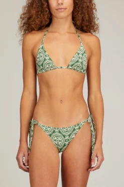 The Lemlem Medallion Triangle String Top takes its inspiration from ancient architectural patterns. You’ll love the bold print of this classic string bikini top. Wear yours with the matching bottoms.