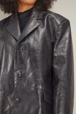 The MM6 Maison Margiela Leather Jacket in Black is a must-have piece from their Spring 23 Collection. This leather coat features a boxy silhouette with a classic button front. Wear yours over trousers with loafers.