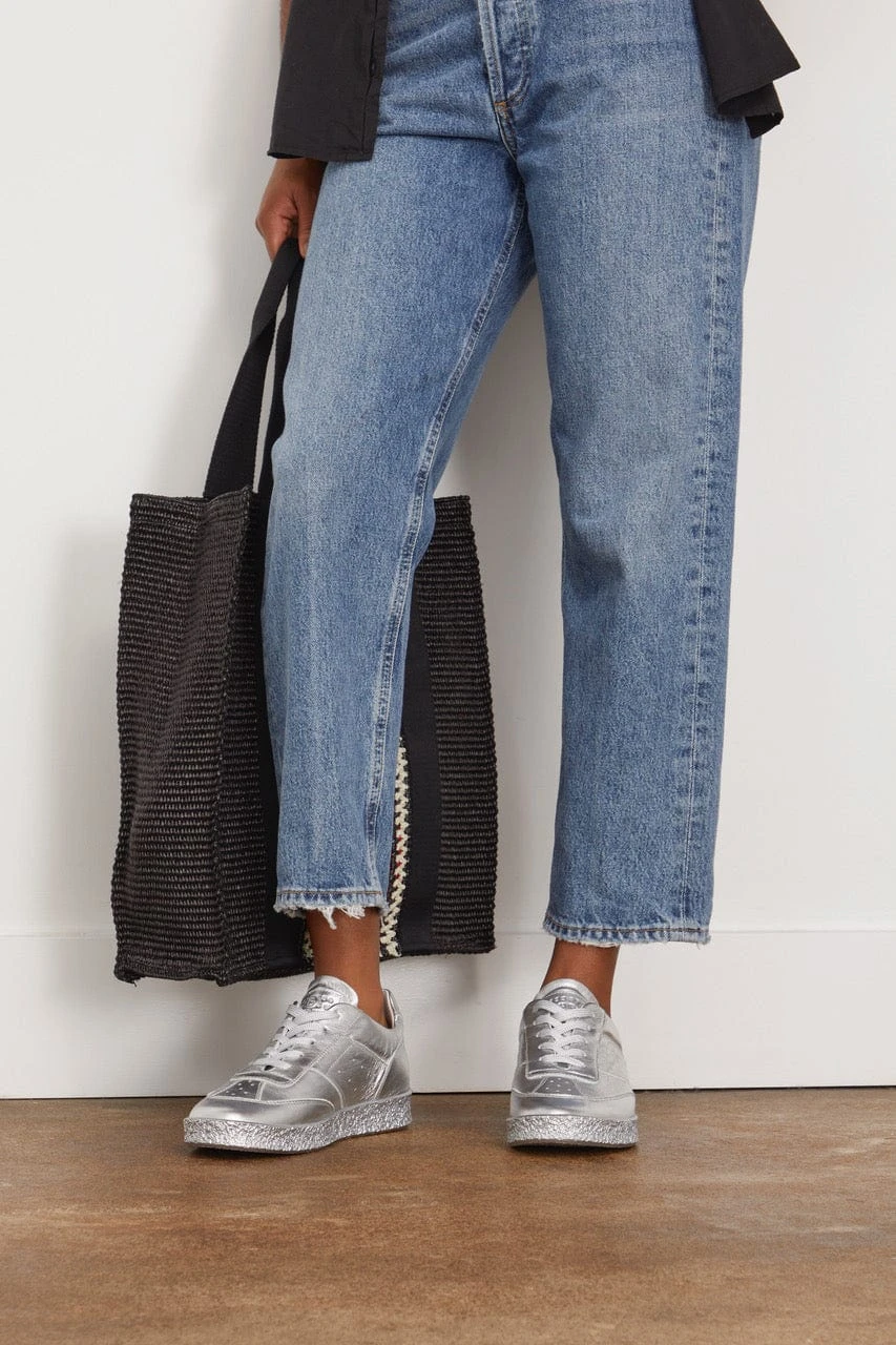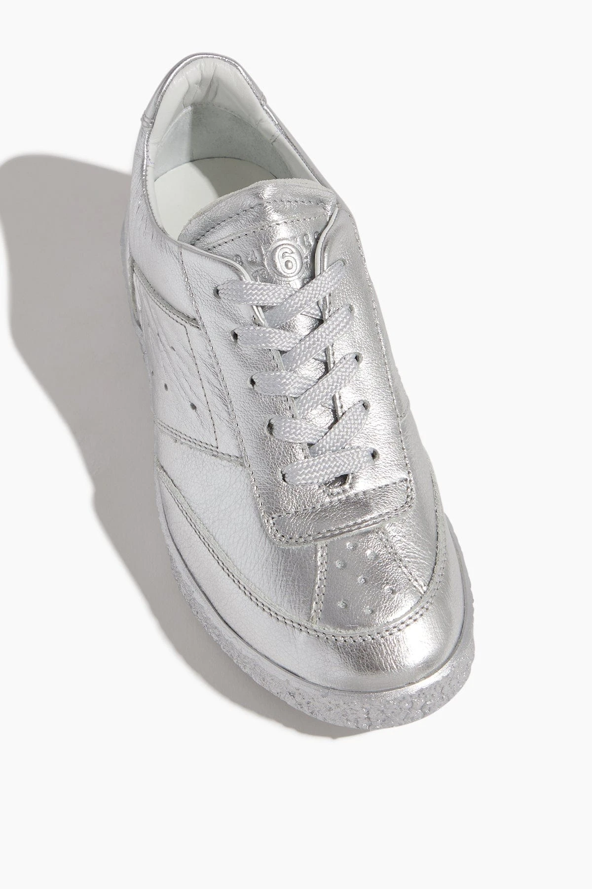 The MM6 Maison Margiela Sneakers in Silver will be a standout piece in your wardrobe. This lowtop sneakers are crafted in bold silver metallic leather.