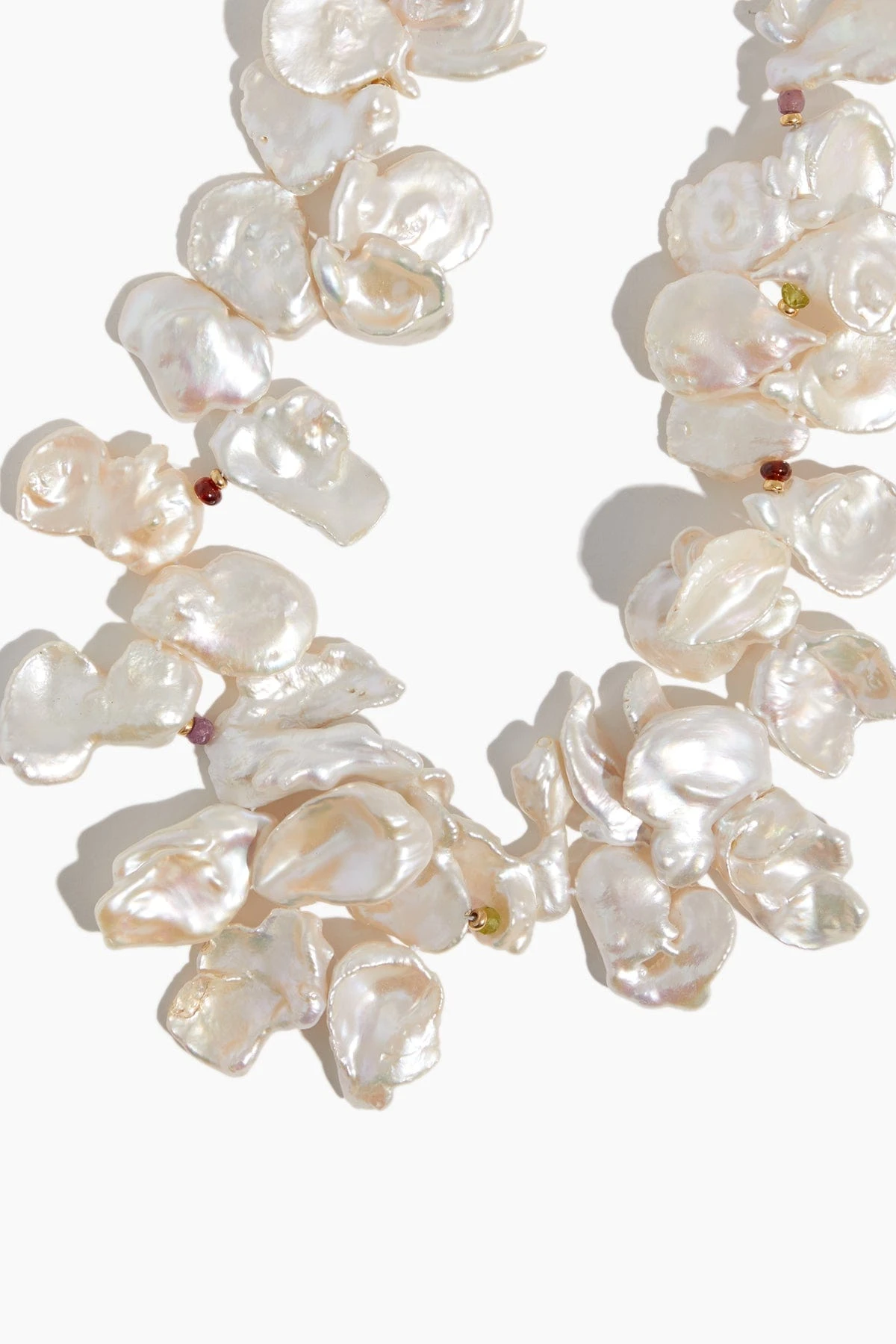 The Lizzie Fortunato Moonflower Necklace will be a standout piece in your jewelry collection. This necklace features freshwater cultured baroque pearls, peridot, sapphire, and hessonite garnet beads.