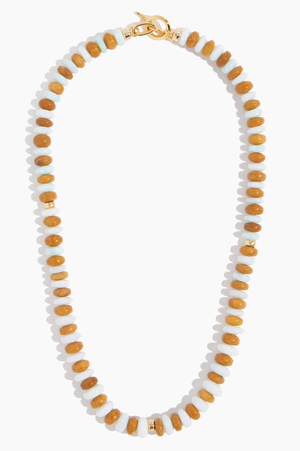 The Lizzie Fortunato Moritz Necklace in Multi is a striped blue opal and brown jasper beaded necklace with gold-plated brass toggle closure.