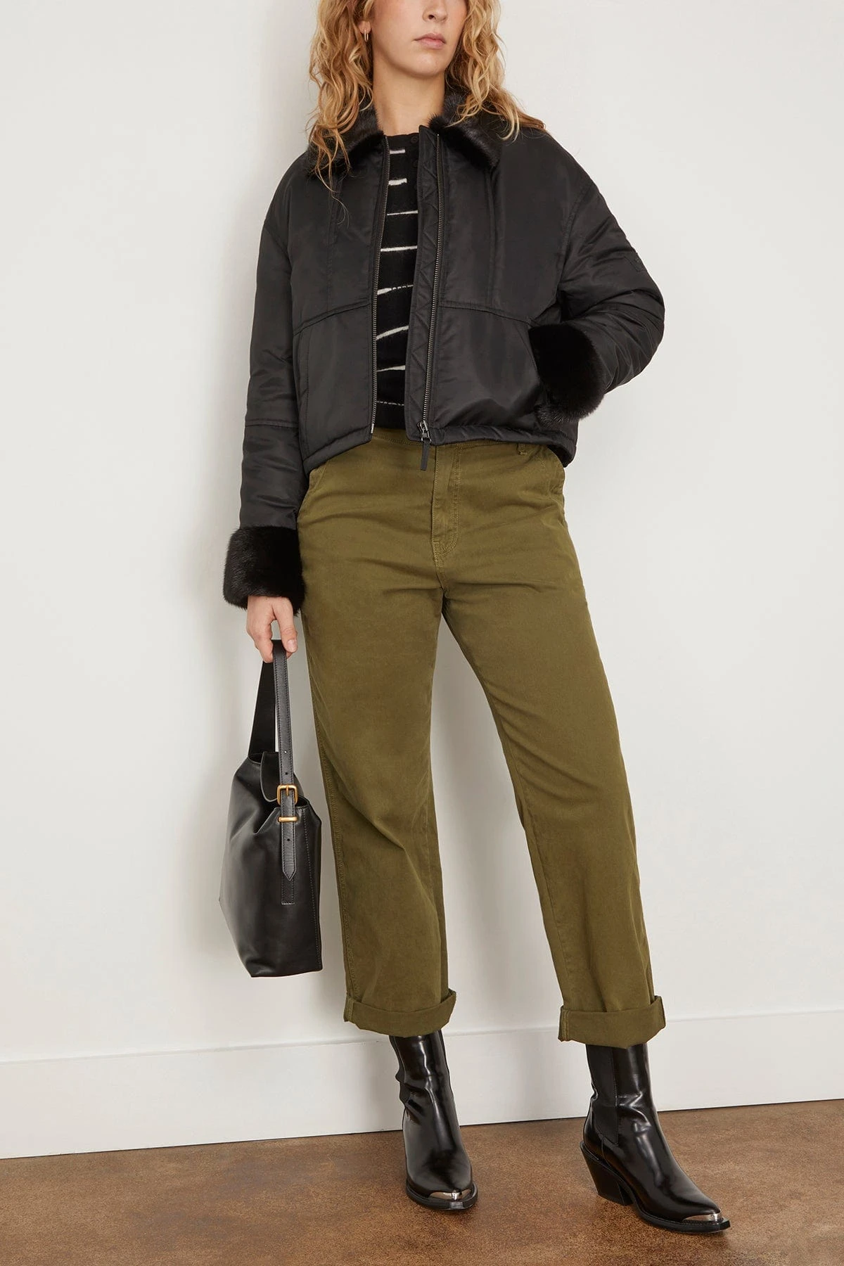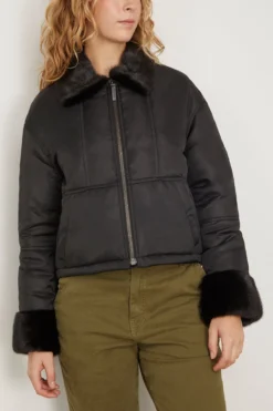 The Yves Salomon Nylon Bomber Jacket is a piece you’ll have for years to come. This bomber jacket features a beautiful mink collar with a padded interior. Wear yours with jeans and a sweater.