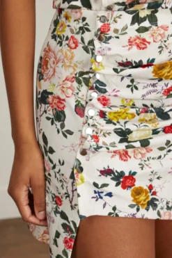 The Paco Rabanne Jupe Knee Skirt in Ivory Rose Gard is crafted in their must-have floral print. You’ll love the side button detail of this knee length skirt. Wear yours with the matching blouse and flats.