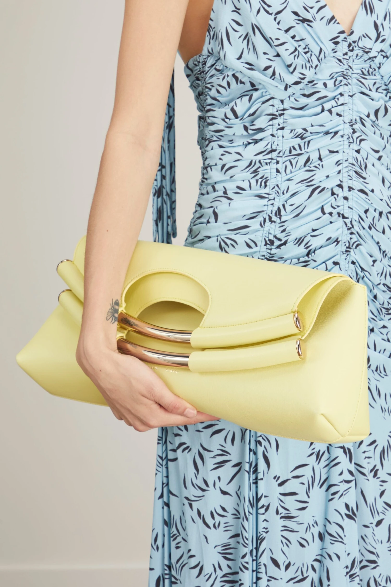 The Proenza Schouler Bar Tote is the latest must-have bag from your favorite designer. This bag features two rounded gold-tone metal handles in leather.