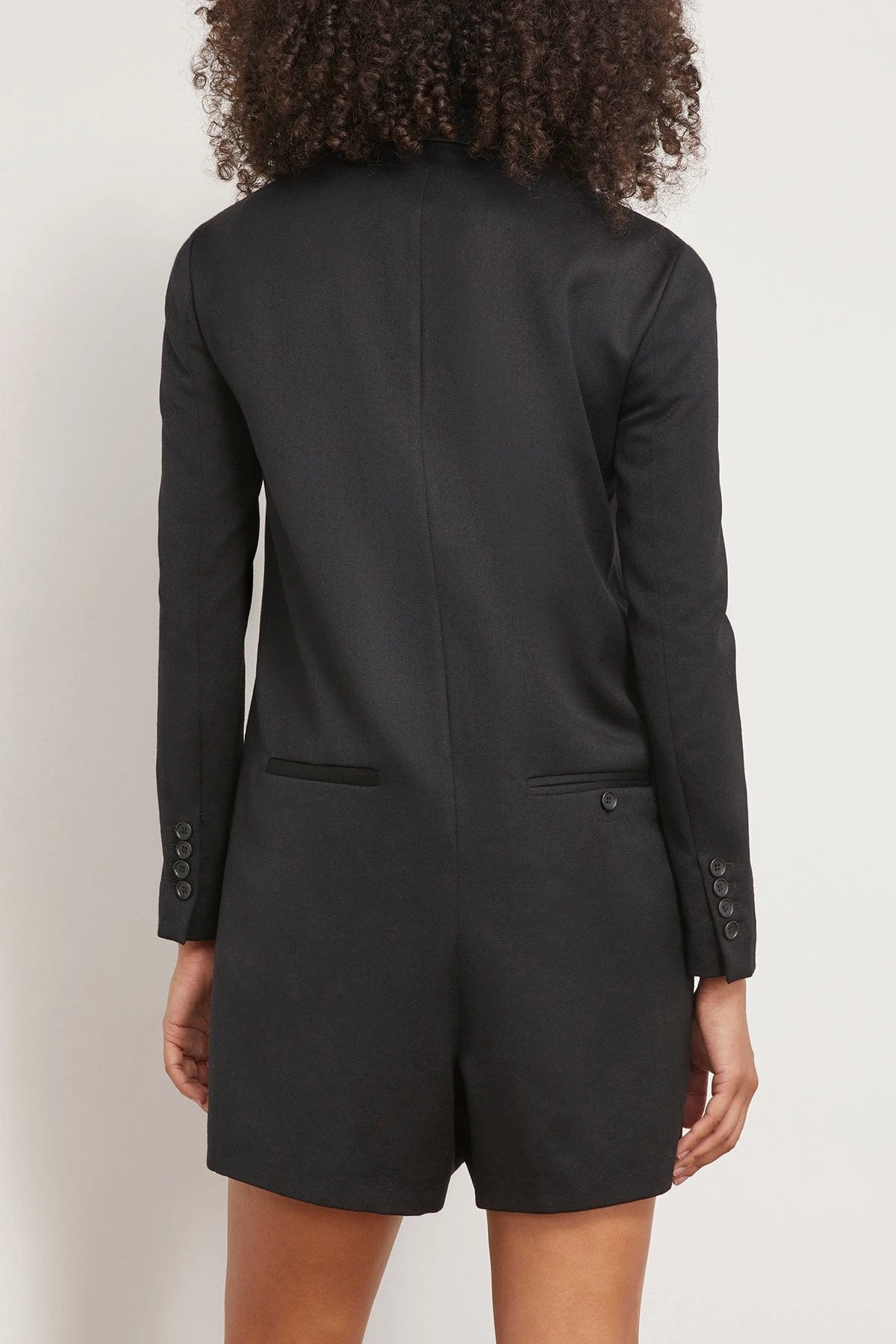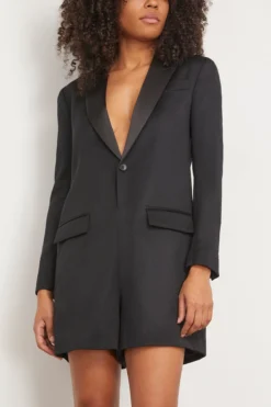 The R13 Tuxedo Romper is Chris Leba’s take on formal attire with this worsted-wool romper refined with tuxedo-inspired details. We love this romper worn with heels and a clutch.