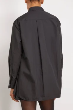 The Sacai Cotton Poplin Dress in Black features a full a-line silhouette with tiered design and long sleeves. We love this classic black mini dress paired with sneakers and a crossbody bag. It will definitely be your go-to on-the-go dress.