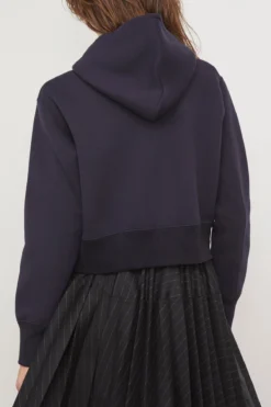 The Sacai Sponge Hoodie is a twist on a classic. This sweatshirt is crafted in their signature sponge cotton with a cropped length and side zippers. Wear yours with trousers and boots.