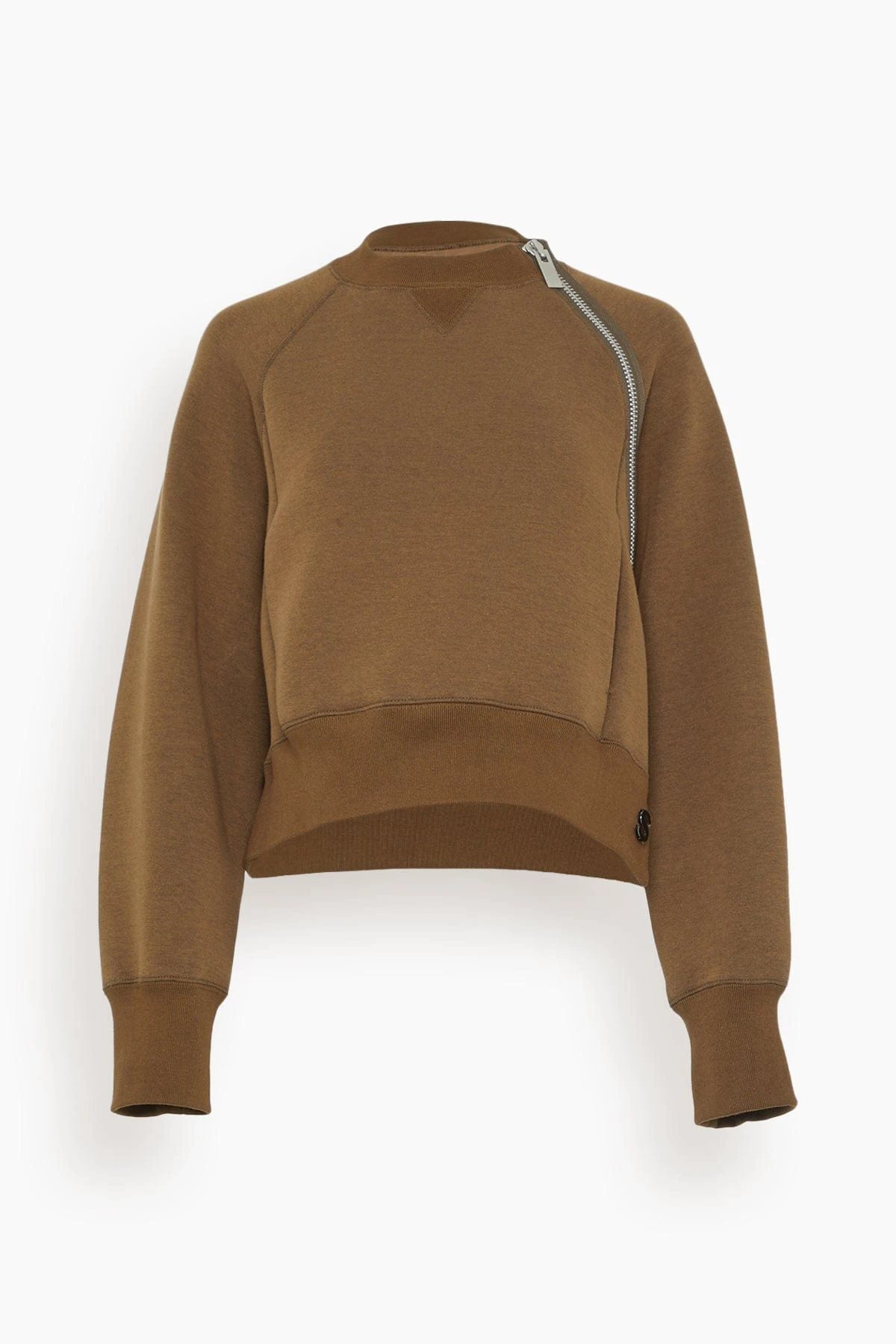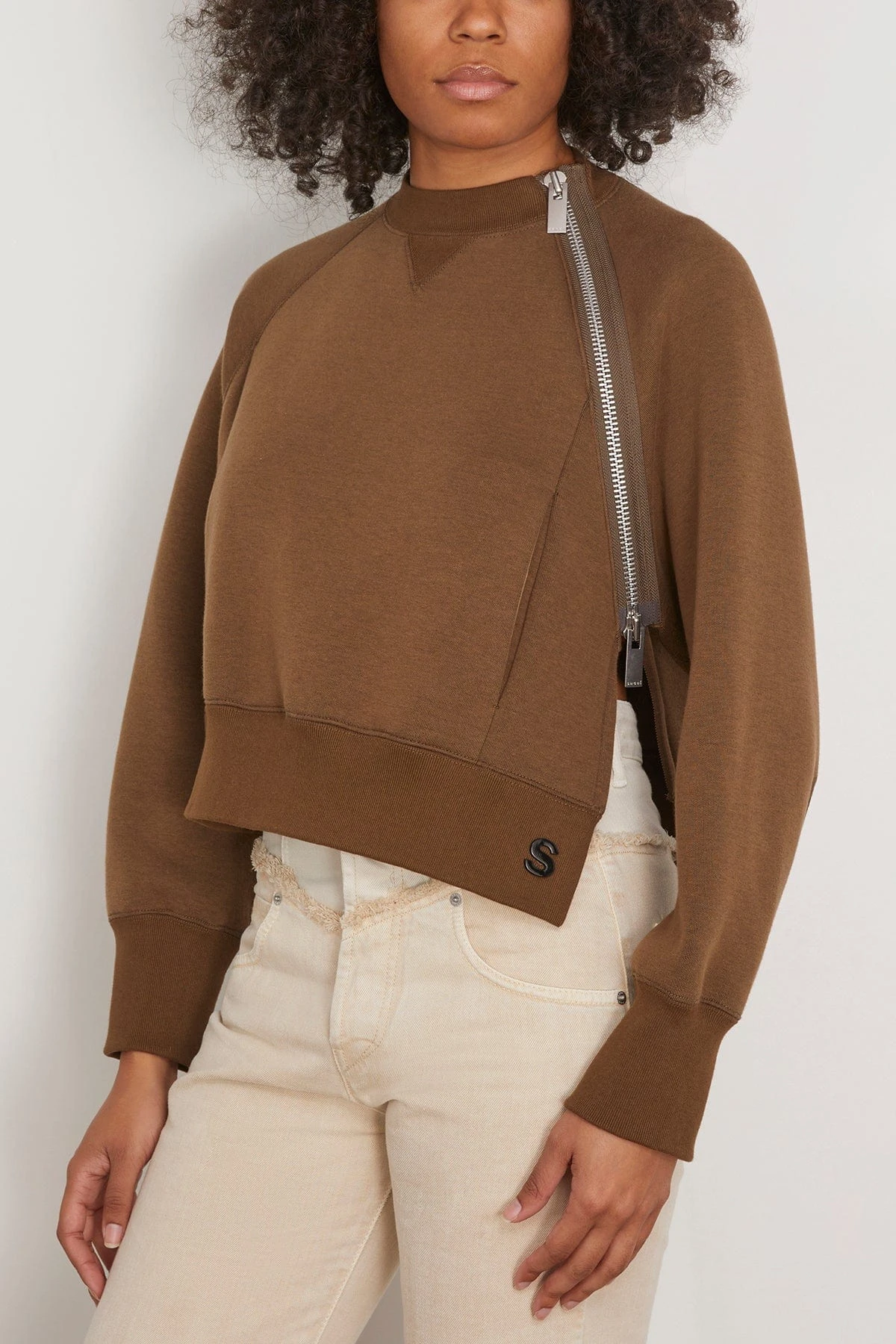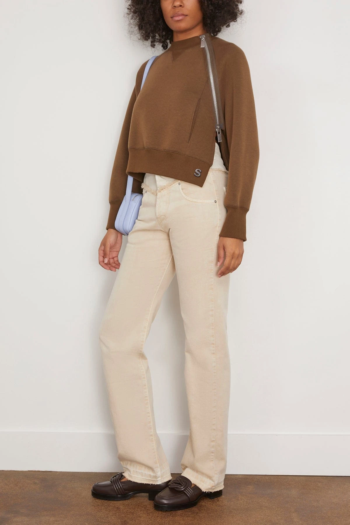 The Sacai Sponge Pullover is crafted in their signature sponge cotton blend. This sweatshirt has a cropped length and boxy silhouette with a unique zip neckline. Wear yours with jeans and boots this season.