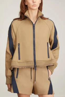 The Sacai Technical Jersey Blouson features the unique details you love from this designer. You’ll love the zip front and flared silhouette of this jacket and can easily double as a top. Wear yours with trousers and boots.