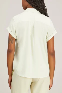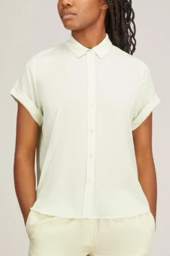 Relaxed fitting printed shirt with capped short sleeves. Button fastening center front, curved hem. All over printed artwork. EcoVero Viscose and Elastane stretch blend fabric. This product contains LENZING ECOVERO Viscose, certified with the EU Ecolabel for meeting high environmental standards.
